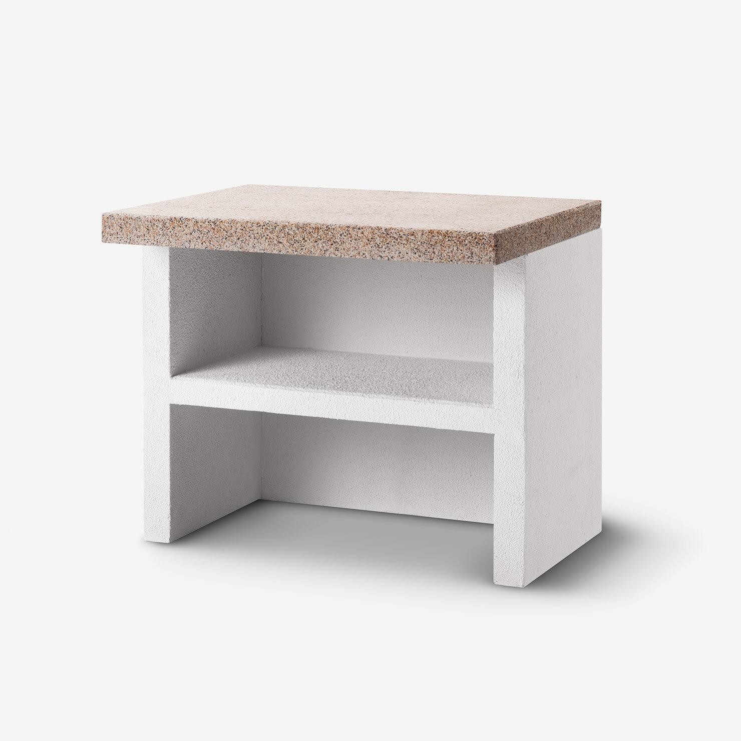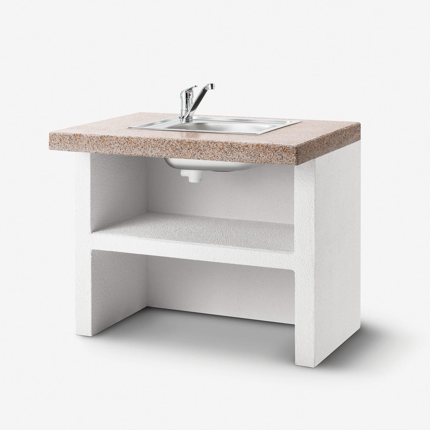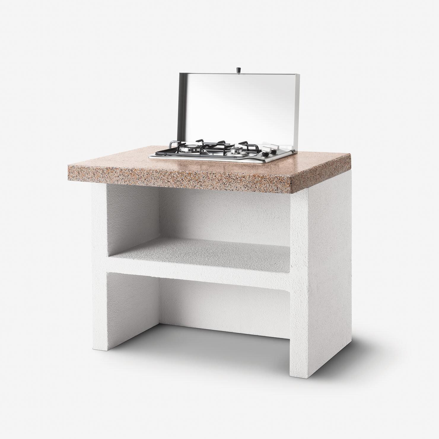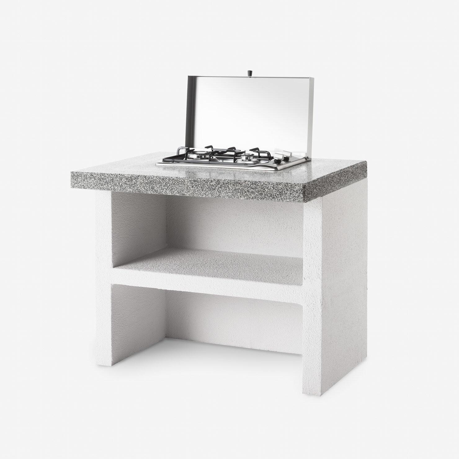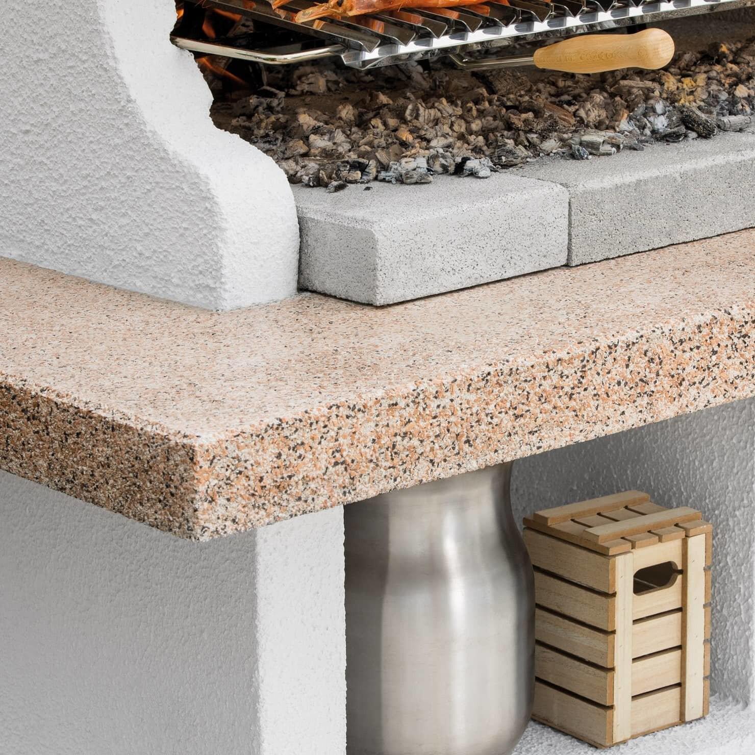Pianosa je izdelan predvsem iz trpežnega belega Marmotech-a in ima osupljivo delovno površino iz poliranega granita. Ta vremensko odporen material zagotavlja dolgotrajno uporabo. Neobdelana napa vključuje zaščitno kovinsko oblogo, dimnik pa je mogoče podaljšati za dodatno funkcionalnost.