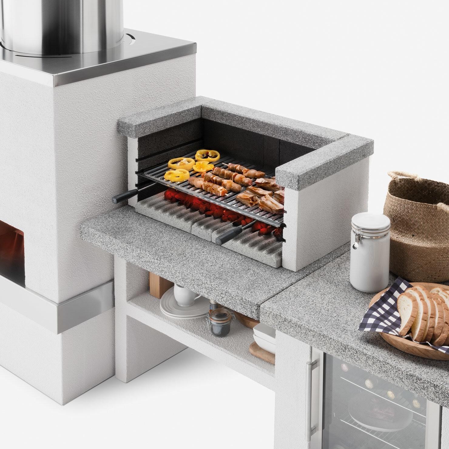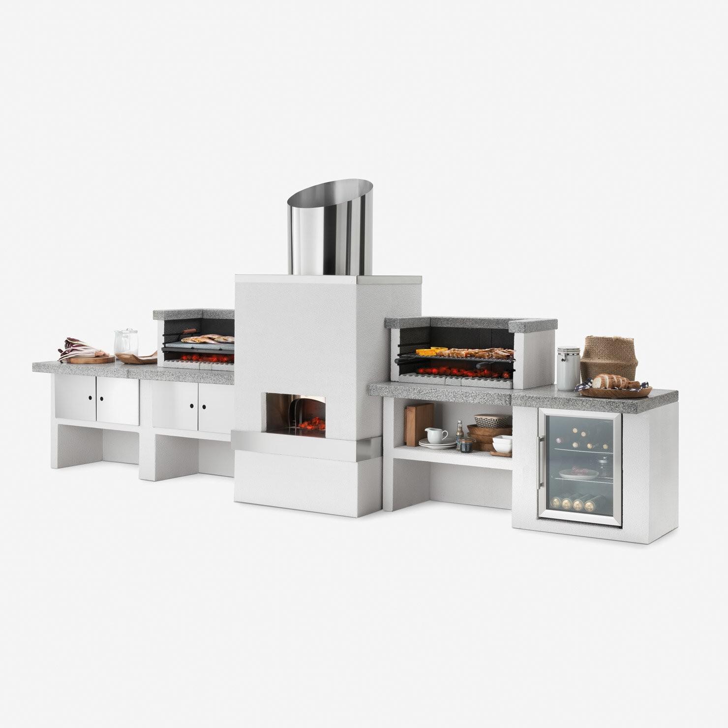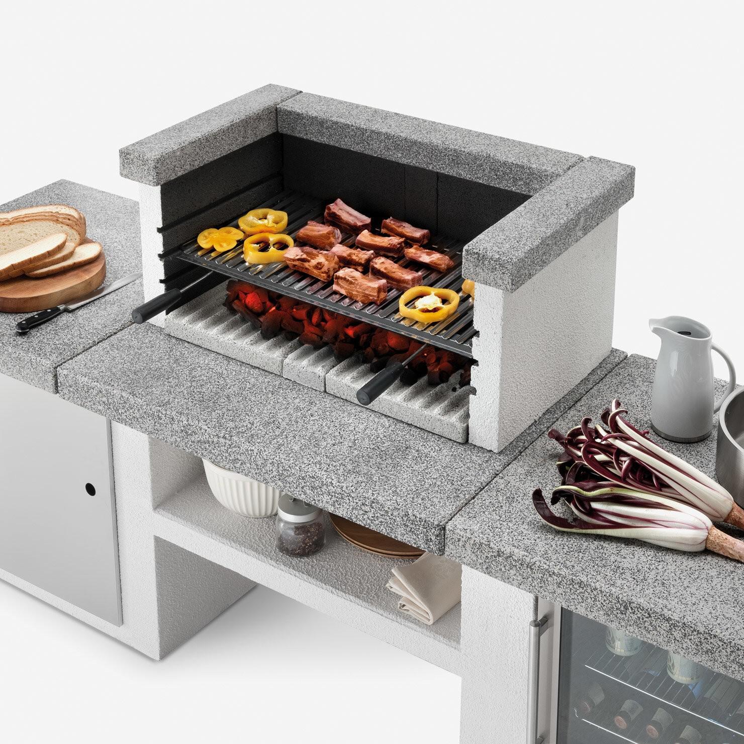 Žar brez nape, izdelan iz cementne mešanice s poliranimi zaključki Marmotech, mora biti nameščen na modulu delovne plošče.