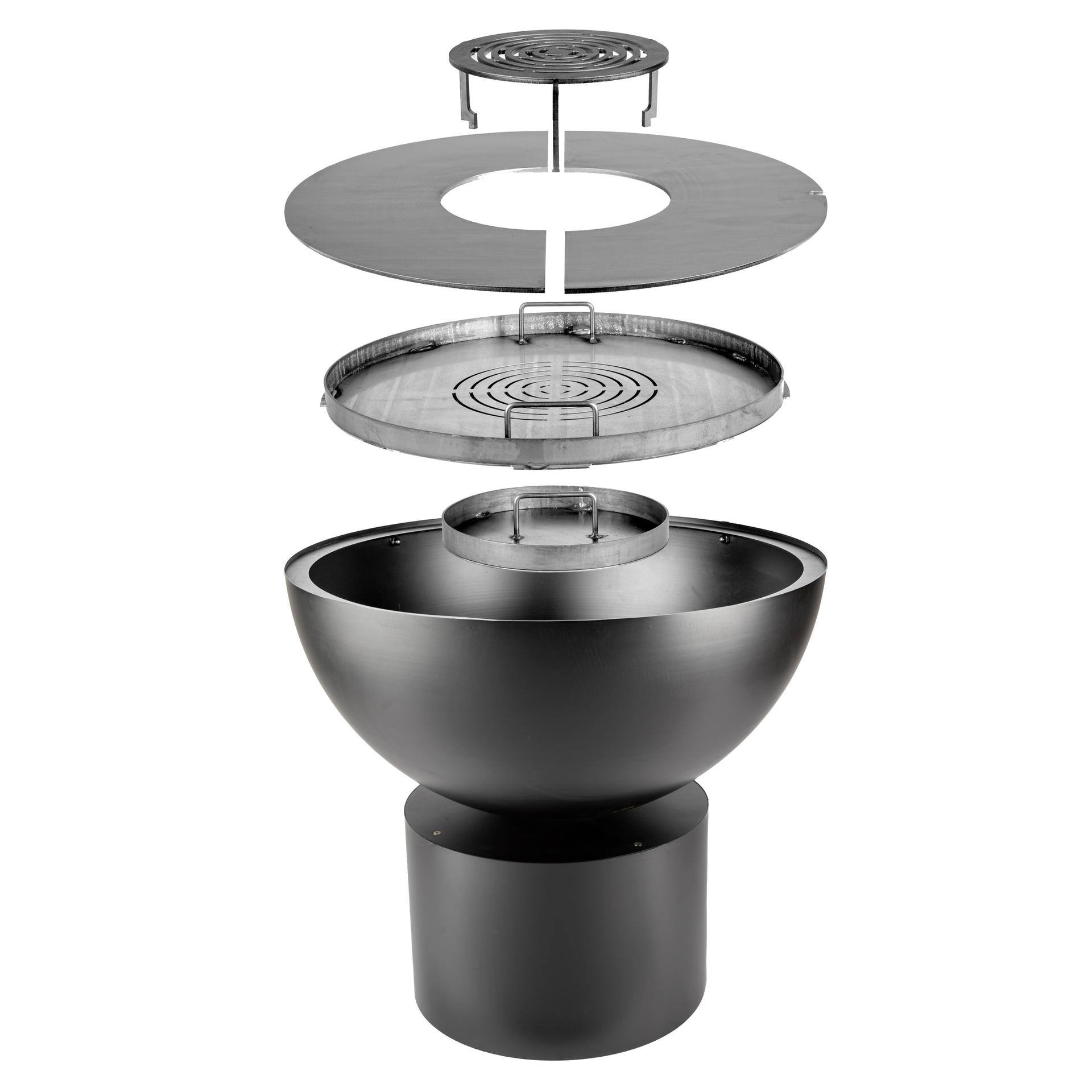 Vrtni žar s kuiščem Primula z elegantnim, hkrati pa trpežnim podstavkom poudarja ikonično zasnovo polkrožnega žara. Visokotemperaturno črno jeklo.