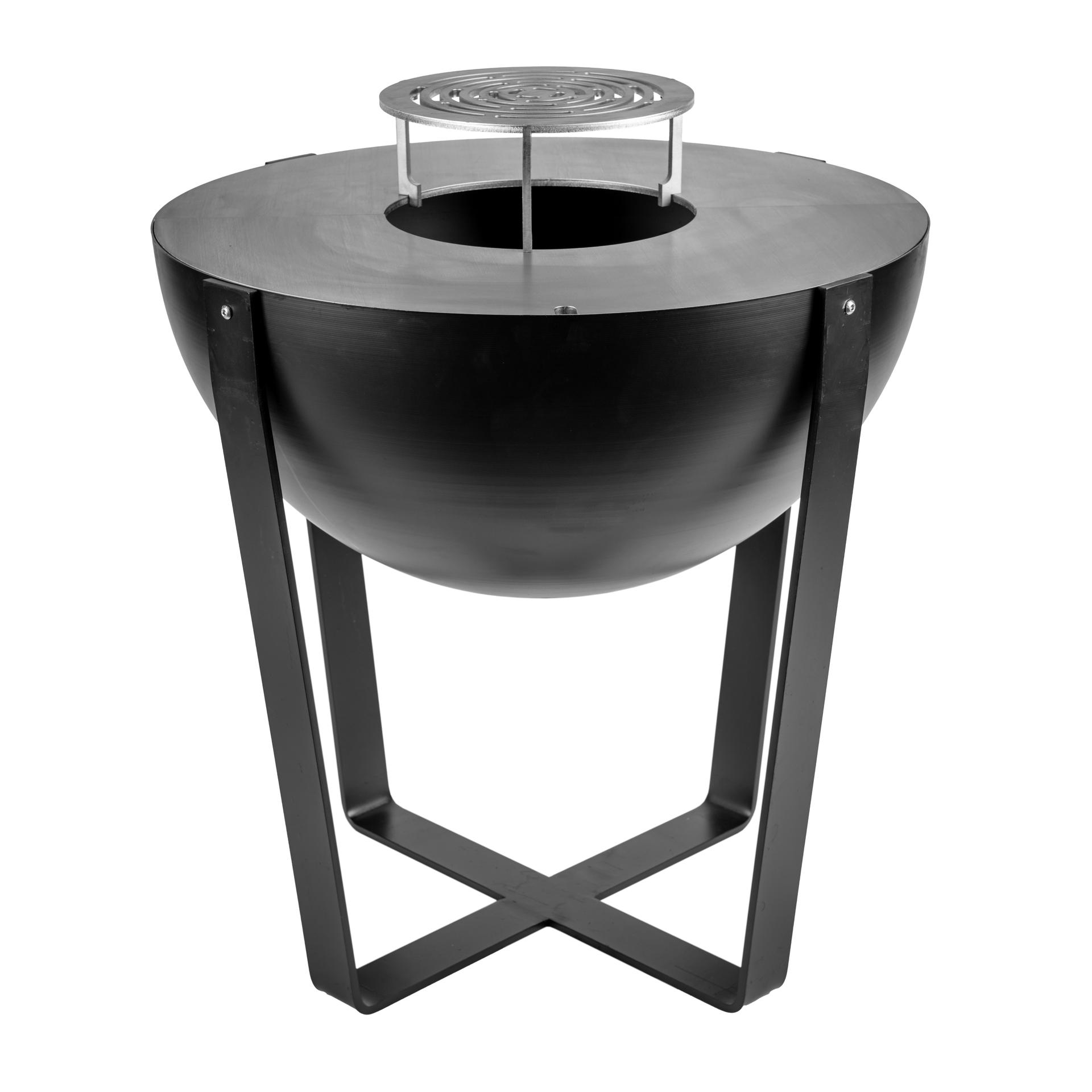 Žar Iris se odlikuje po prefinjeni strukturi, minimalistični zasnovi s prekrižanim podstavkom in gladkimi linijami. Visokotemperaturno črno jeklo.
