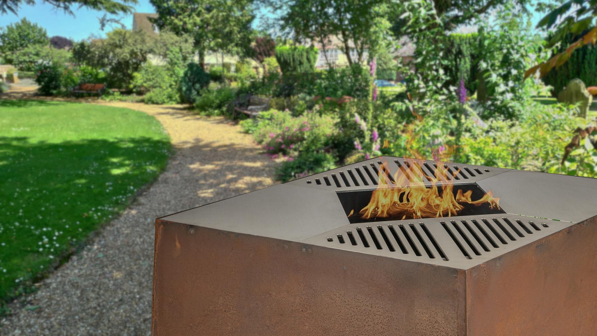 Žar Giglio se s svojo geometrijsko obliko in elegantnimi linijami brez težav vključi v vsako zunanje okolje. Jeklo z rjastim učinkom.