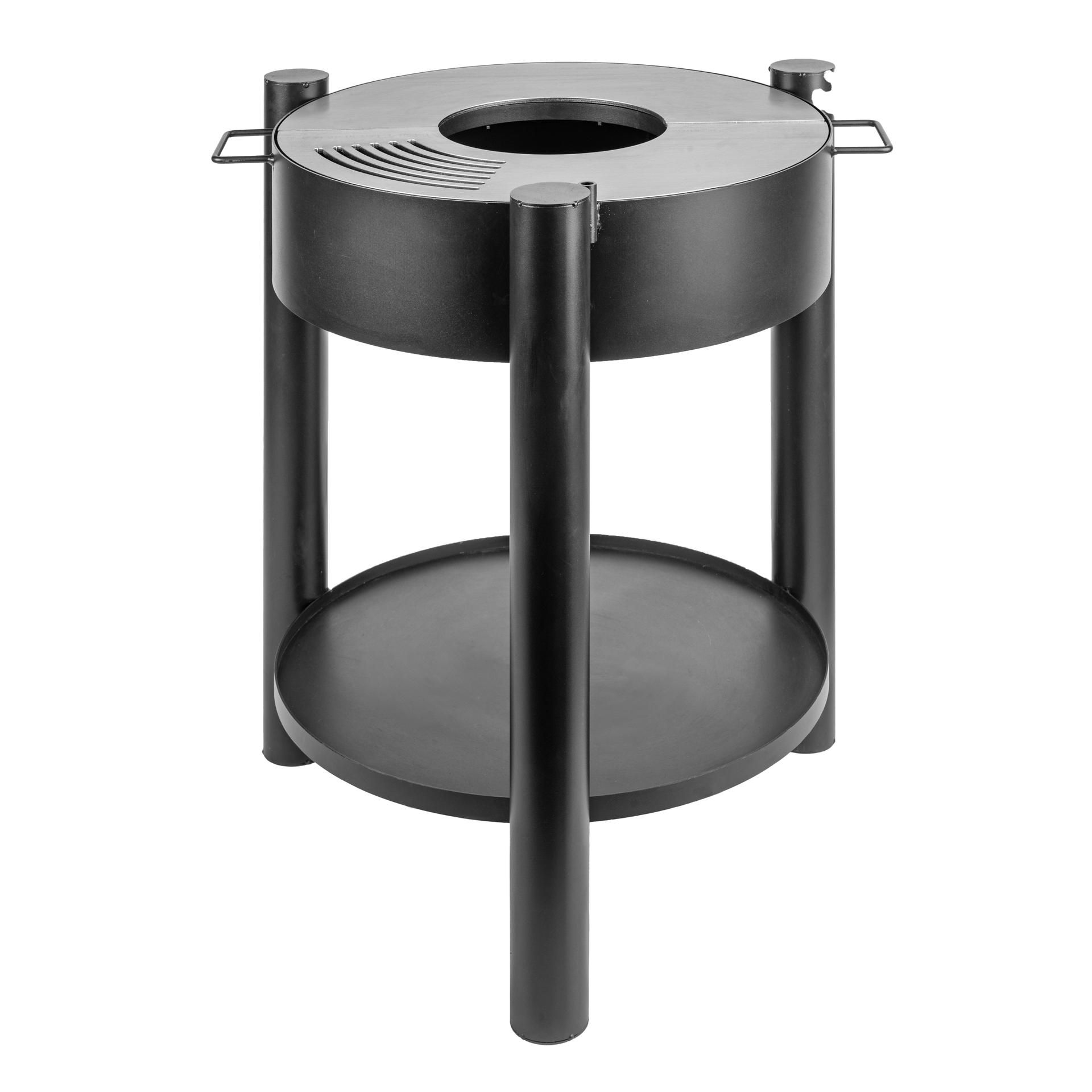 Izdelan je iz visokotemperaturnega črnega jekla, zato zagotavlja stabilnost in dolgotrajno delovanje. Kuhalna površina debeline 5 mm optimizira porazdelitev toplote za popolne rezultate. Spodnji podstavek povečuje funkcionalnost, saj služi kot priročno držalo za drva in priročna polica za shranjevanje pripomočkov, sestavin ali dodatne opreme.