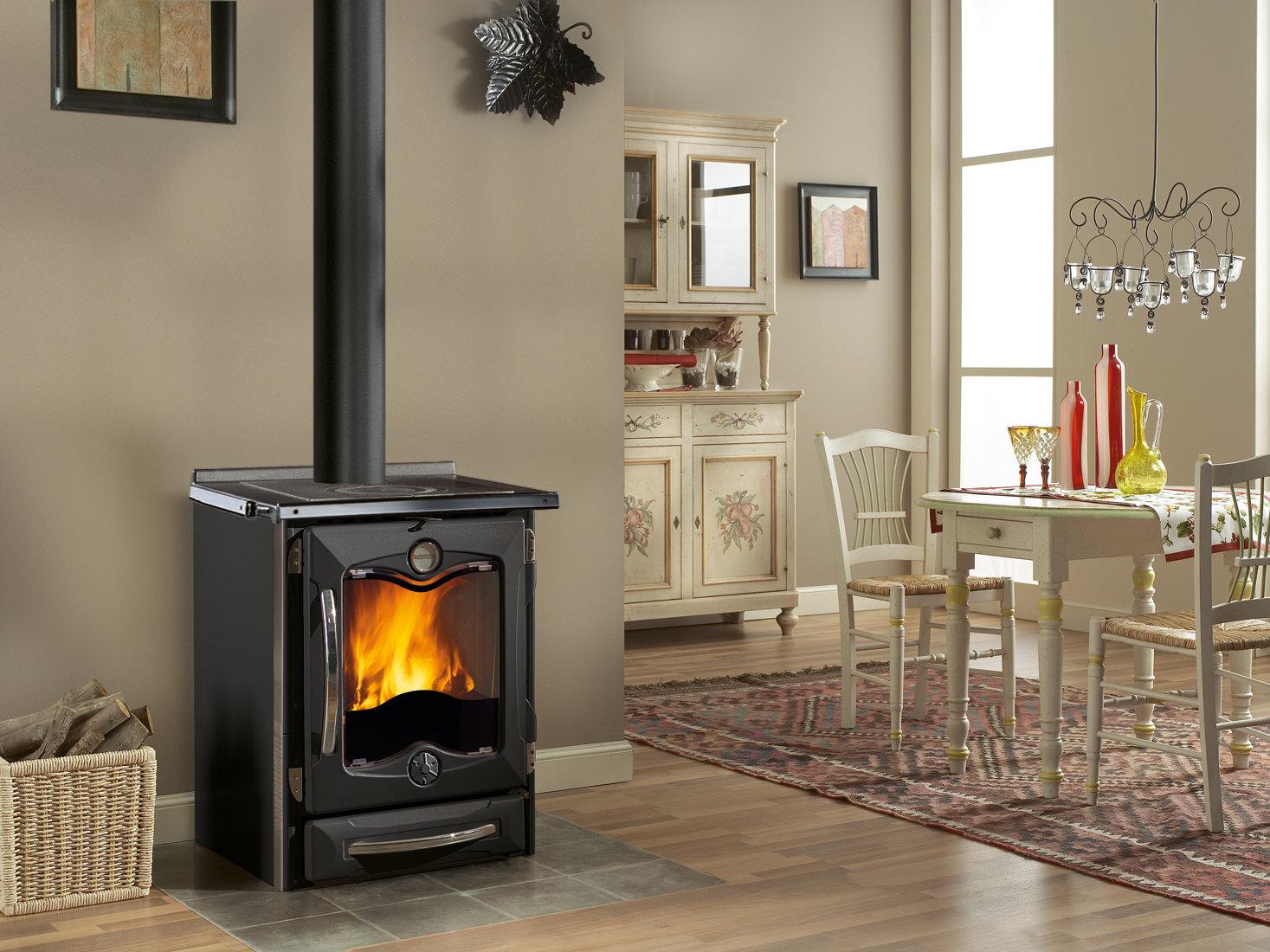 Učinkovito izgorevanje z nastavljivim primarnim in sekundarnim zrakom s sistemom za naknadno zgorevanje za nizke emisije. Nastavljiva litoželezna rešetka in vrata kurišča z dvojnim steklom s širokim pogledom na ogenj. Izvlečni predal za drva.