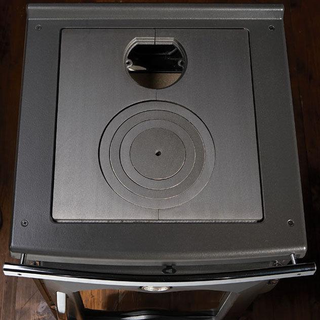 Štedilnik na drva brez pečice, vendar z velikim ognjiščem. Notranja obloga kurišča iz litega železa in Nordikerja. Kuhalna plošča s tremi obroči iz poliranega litega železa. Vrata, ohišje in okvir so izdelani iz emajlirane litine, ki ima ob pravilni uporabi skoraj neomejeno življenjsko dobo in zahteva minimalno vzdrževanje.