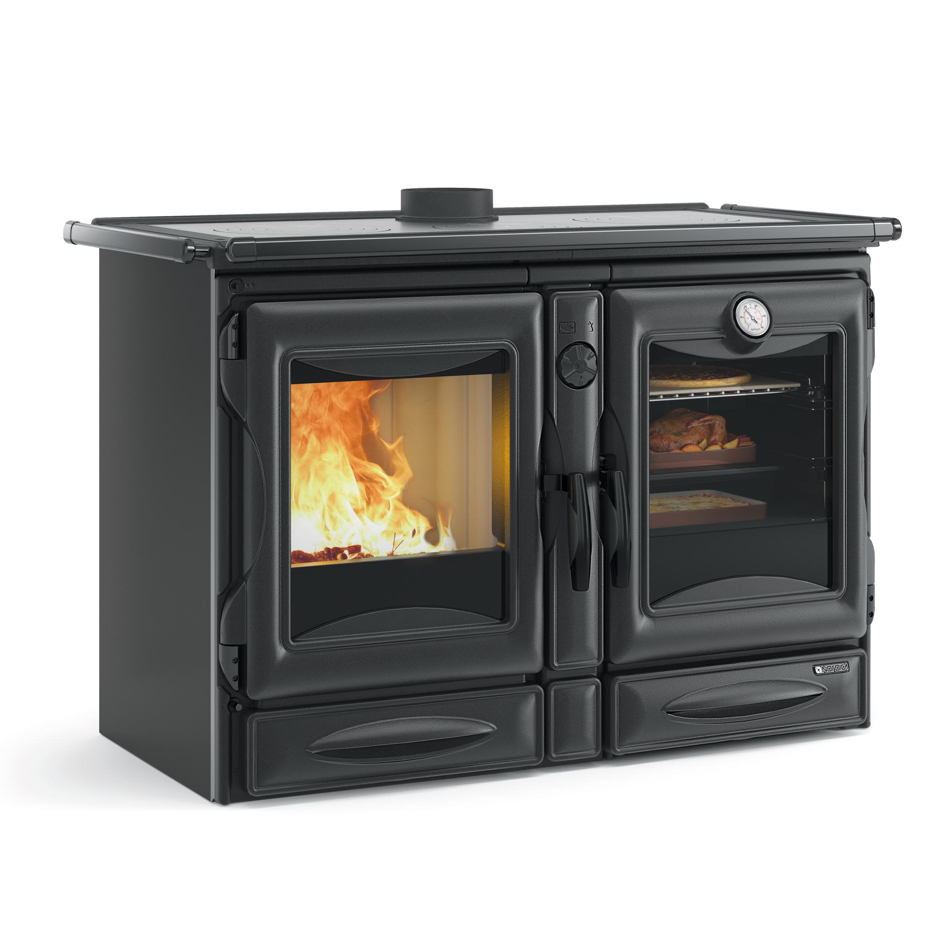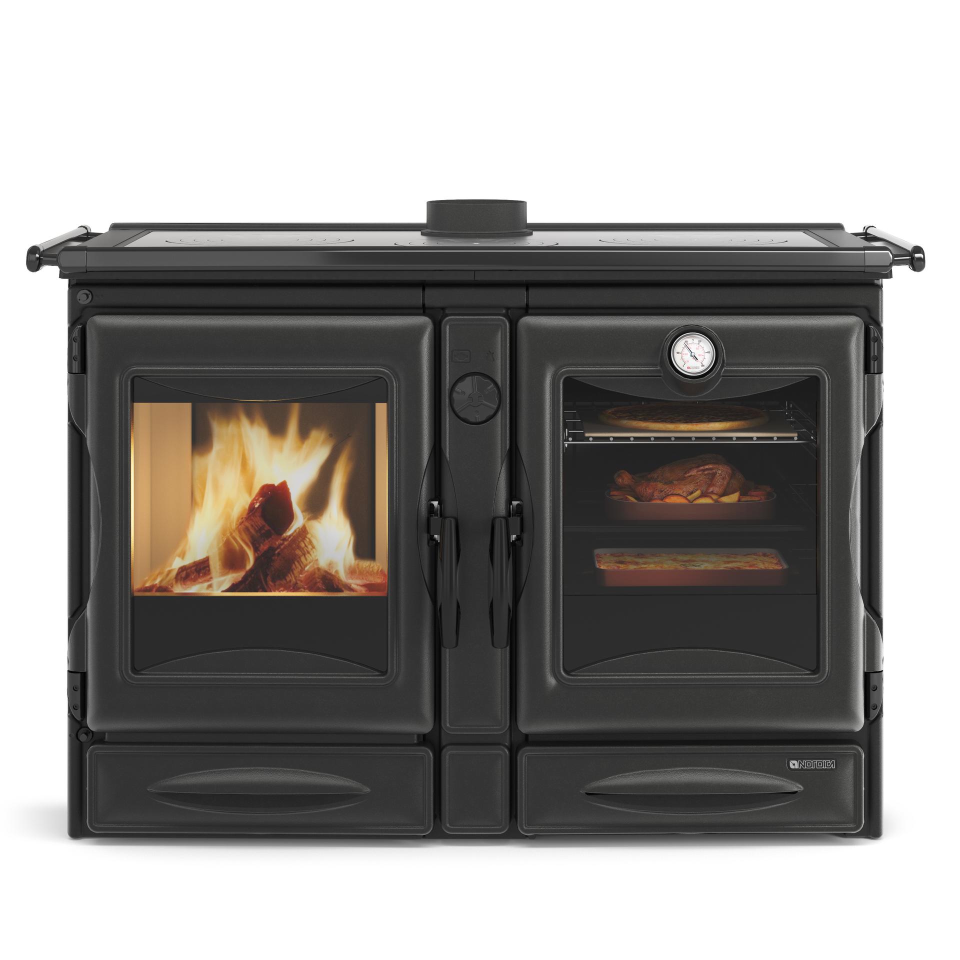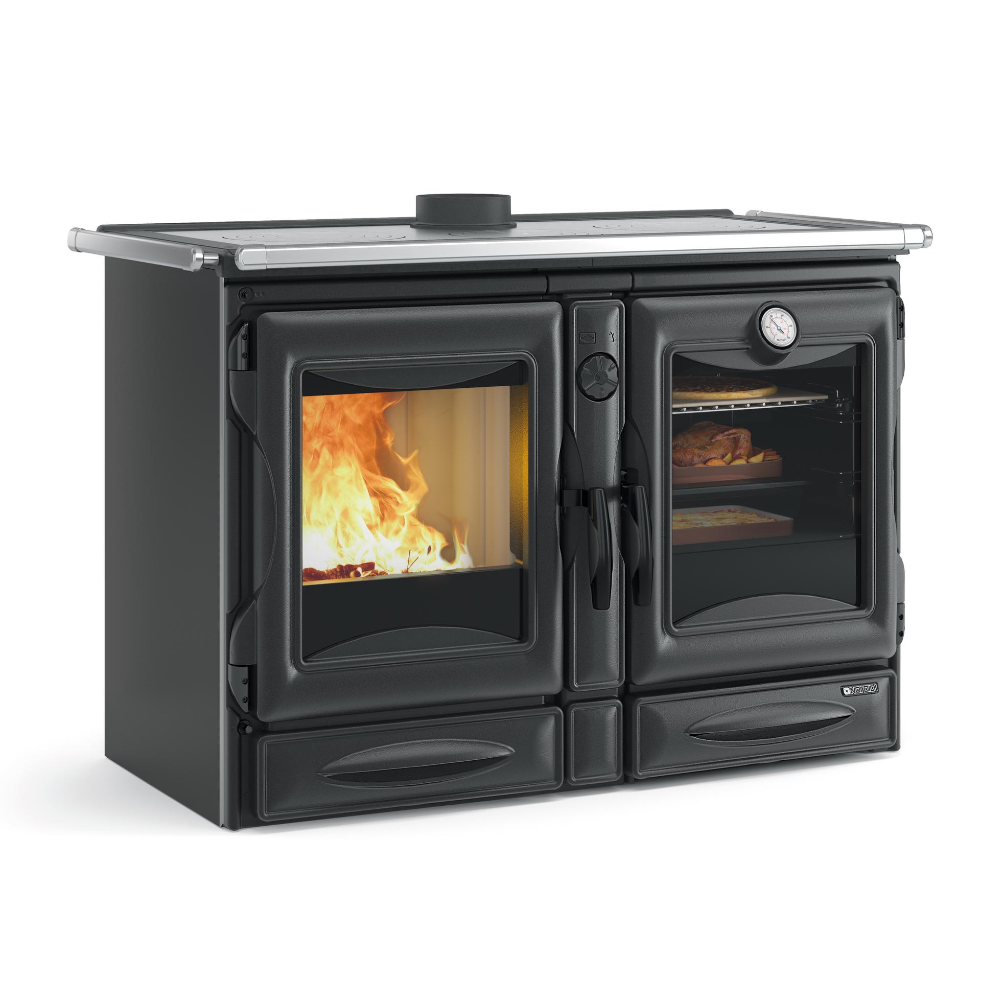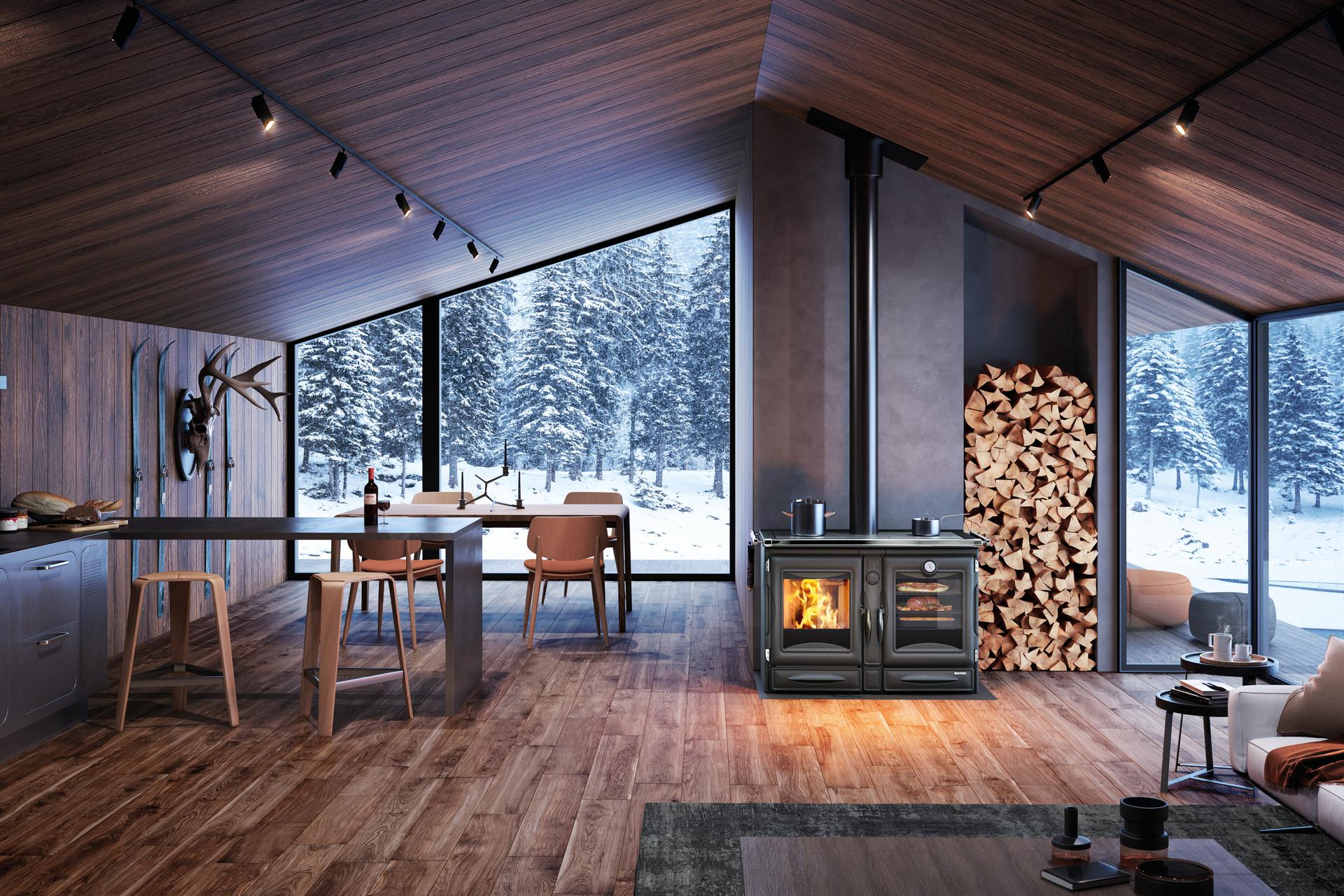 Štedilnik na drva La Nordica Alaska je čudovito oblikovana naprava, ki združuje tradicionalno estetiko s sodobno učinkovitostjo. S simetrično zasnovo z enako velikim kuriščem in pečico ta štedilnik vsaki kuhinji doda brezčasen čar, hkrati pa zagotavlja prepričljivo toplotno moč. Štedilnik Alaska je dokončan v elegantni črni barvi s kromiranimi detajli, izdelan pa je iz trpežnega litega železa z emajliranimi zaključki, kar zagotavlja dolgotrajno delovanje. Prostorna pečica ponuja več položajev polic, kar omogoča prilagodljivost različnim potrebam po kuhanju, medtem ko visoka stopnja učinkovitosti zagotavlja optimalen izkoristek toplote.