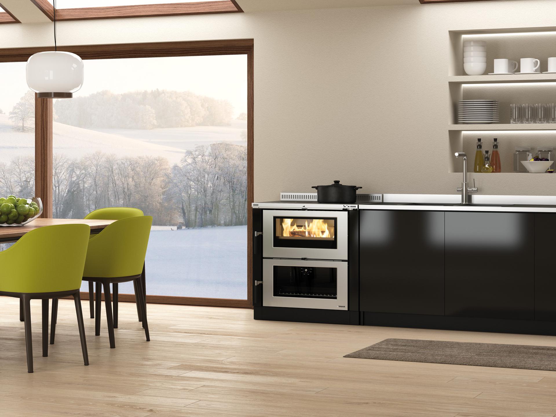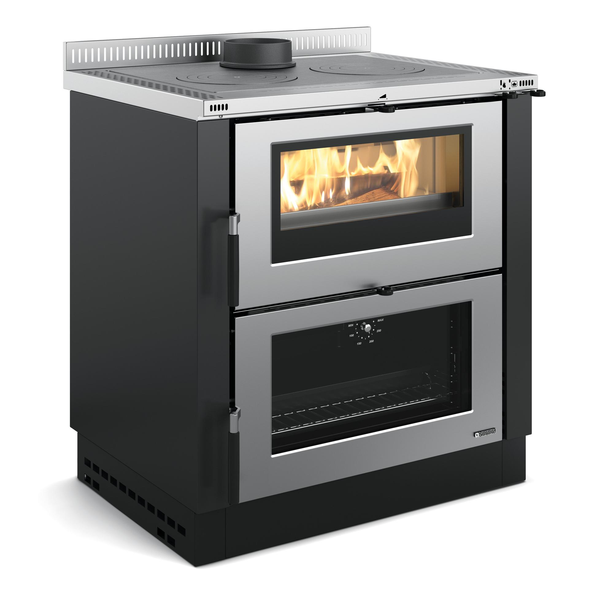 Vgradni ali prostostoječi štedilnik na drva s širokim pogledom na ogenj in možnostjo uporabe 50 cm dolgih polen. Ohišje iz emajlirane litine. Notranja obloga kurišča iz litega železa in Nordikerja. Kuhalna plošča in obroči iz poliranega litega železa. Litoželezna vrata kurišča, vrata pečice iz emajliranega jekla. Okvir iz nerjavečega jekla. Izvlečni predal za drva. Keramično steklo. Sprednji ročaj. Debelina roba kuhalne plošče 3 cm.