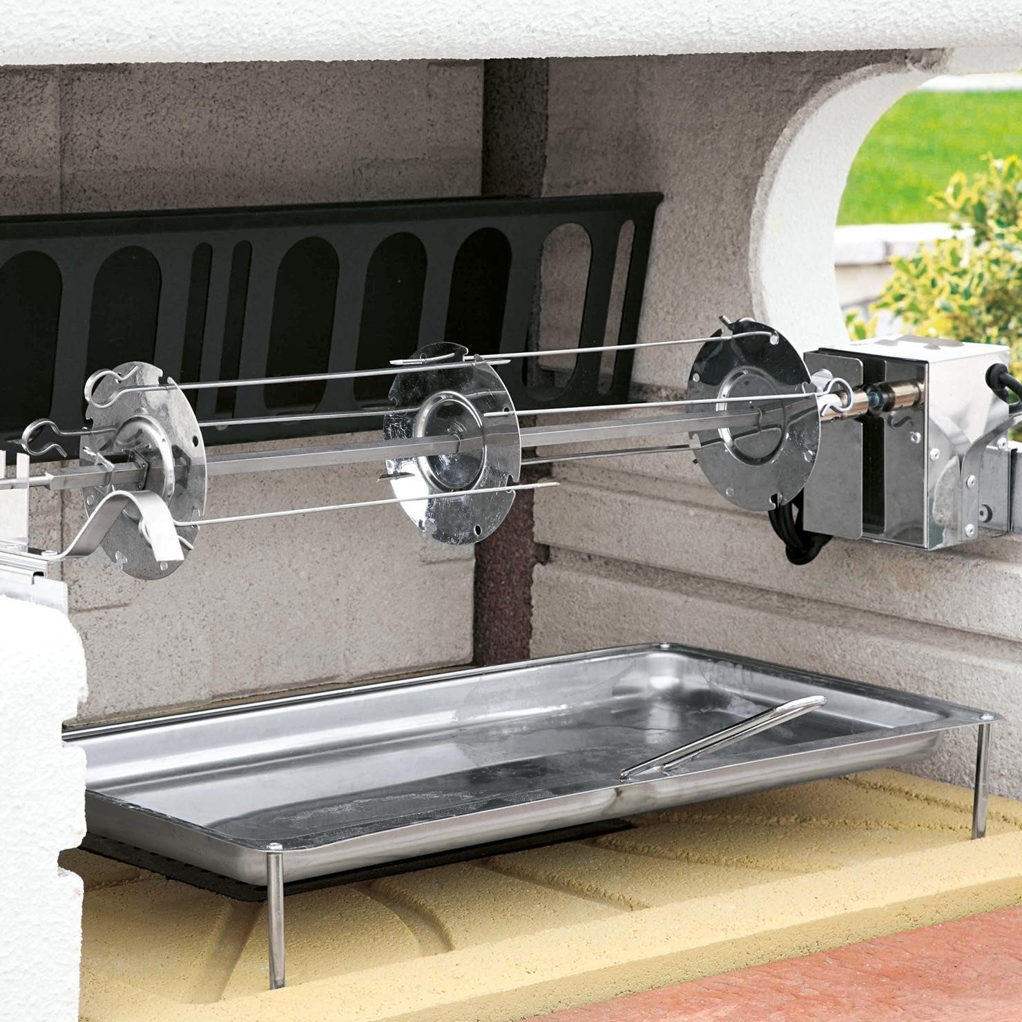 Za peko več živil hkrati je standardno opremljen s kar 8 kovinskimi nabodali, 8 mm kvadratno palico iz nerjavnega jekla in posodo za kapljanje. Z možnostjo prilagajanja oddaljenosti od ognja omogoča boljši nadzor nad peko. Največja nosilnost 6 kg.