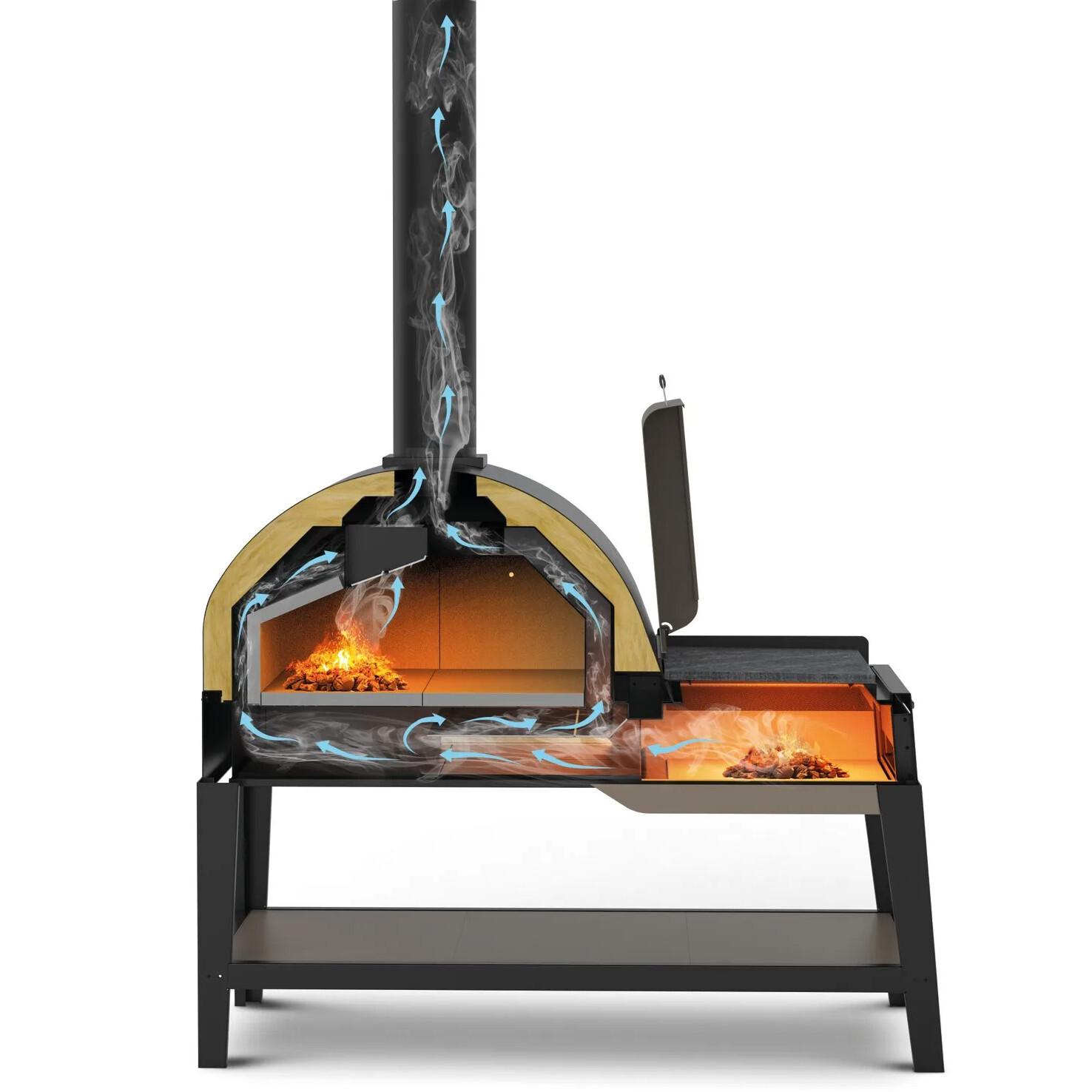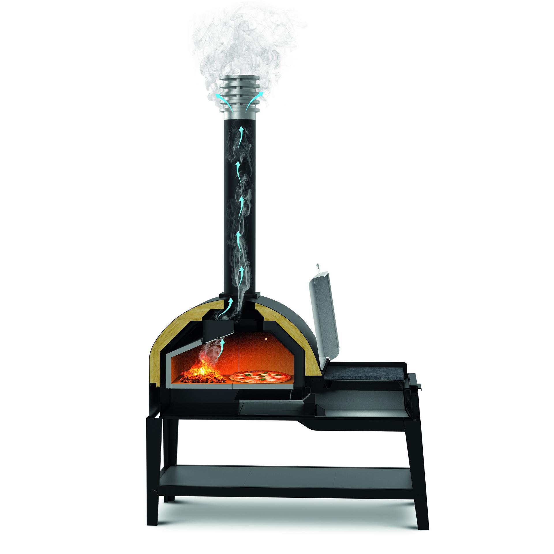 Zgorevalna komora, enostavno dostopna z vrati, omogoča izjemno enostaven vžig in upravljanje plamena, kar je idealno tudi za manj izkušene kuharje.