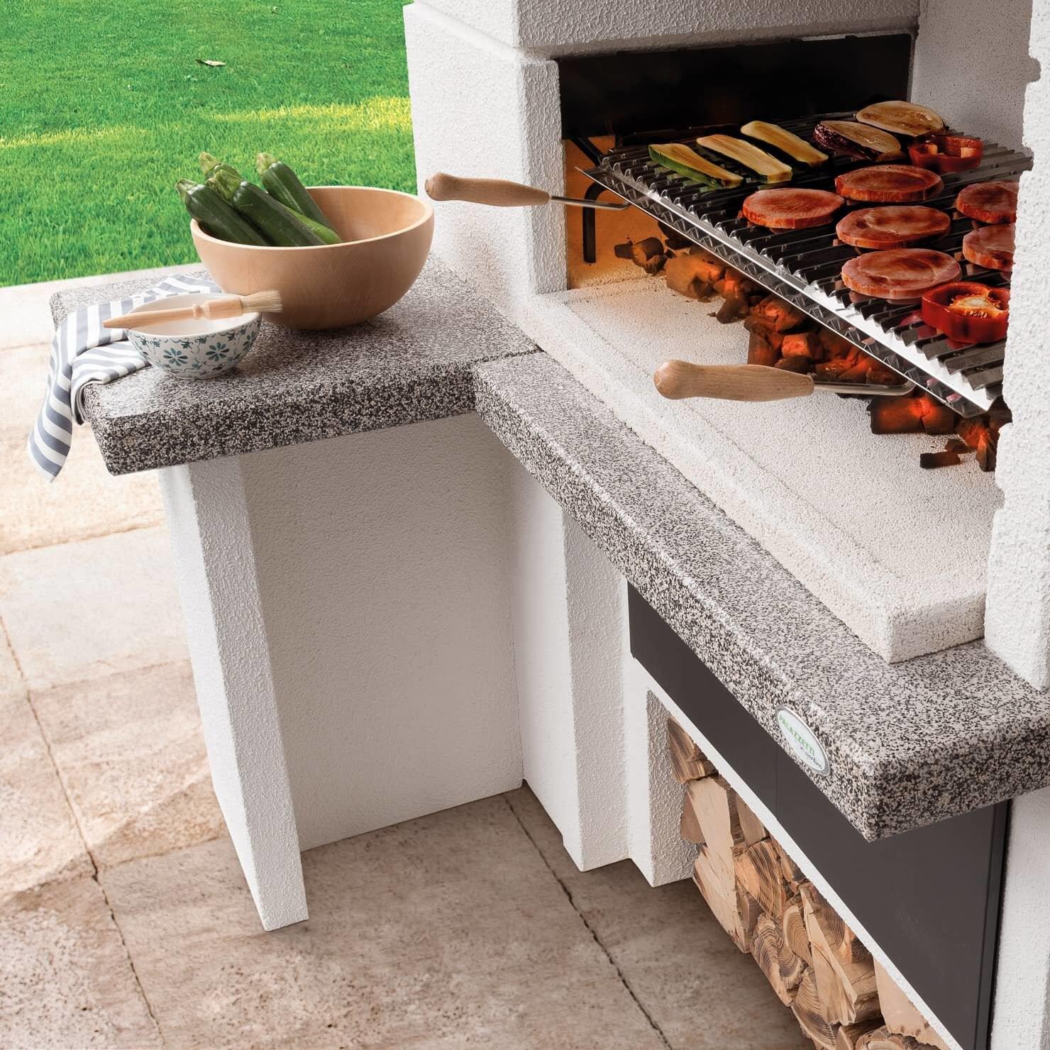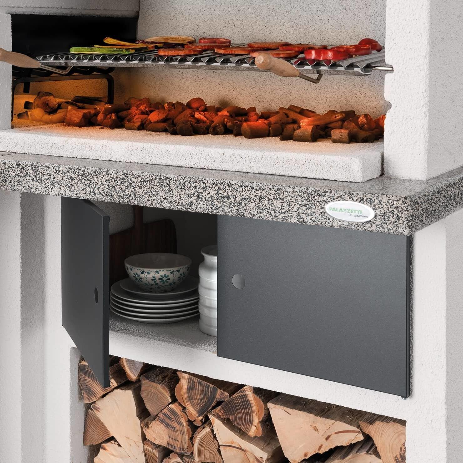 Pri peki na žaru je treba opraviti veliko manjših opravil, pri čemer je vrtni kamin Faro New zasnovana tako, da vam je v pomoč. Ponuja veliko prostora za shranjevanje in delo. V podstavek je vgrajen predal za shranjevanje drv, tako da boste imeli drva vedno pri roki. Nad njim lahko v za to namenjen prostor za shranjevanje shranite lonce, krožnike ali jedilni pribor. Vrtni kamin Faro New ima tudi delovne površine Marmotech s poliranim zaključkom, ki vam nudijo veliko prostora za vse vaše dejavnosti pri peki na žaru.