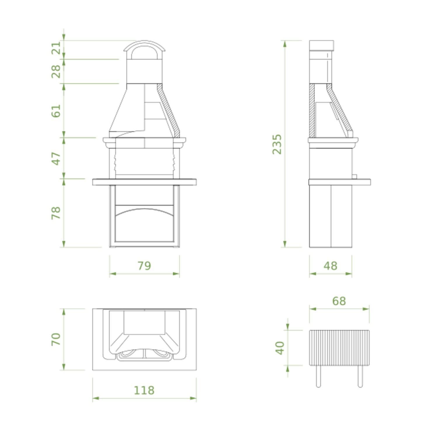 Ta kompaktni vrtni kamin je primeren tako za tradicionalno kuhanje na oglje kot na drva. Vgrajeni sistem Fast-Fire Box izboljša zmogljivost s prezračevanim predalom za pepel za boljše izgorevanje, optimiziranim pretokom zraka skozi strateške odprtine in poenostavljenim čiščenjem po žaru.
