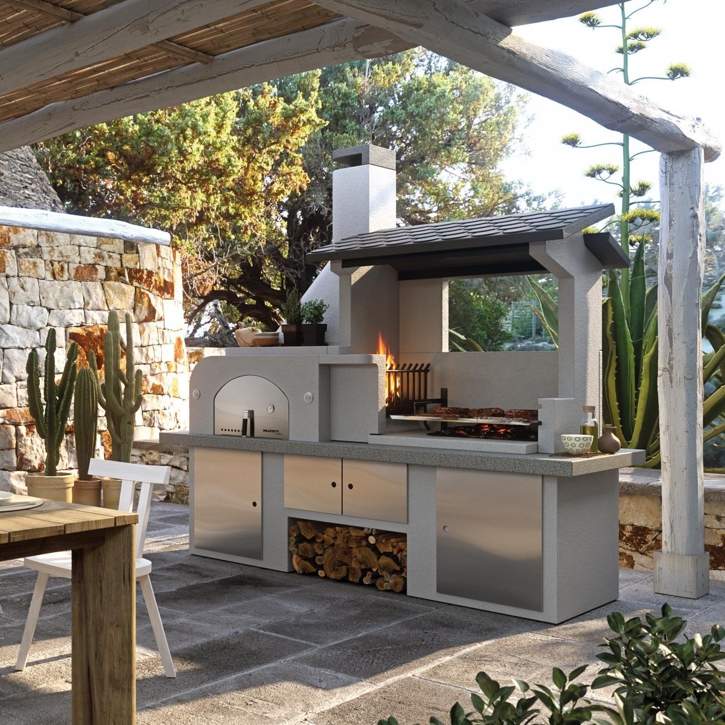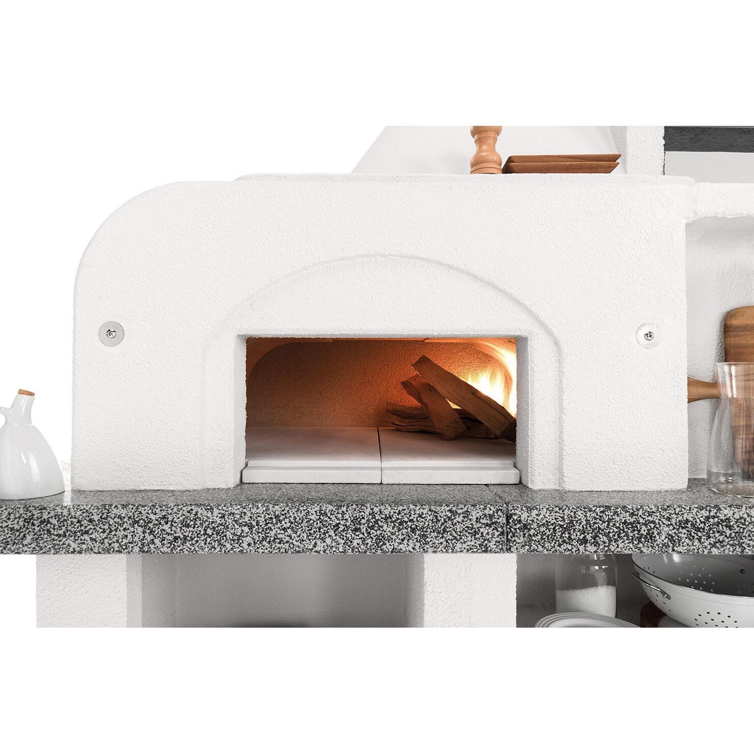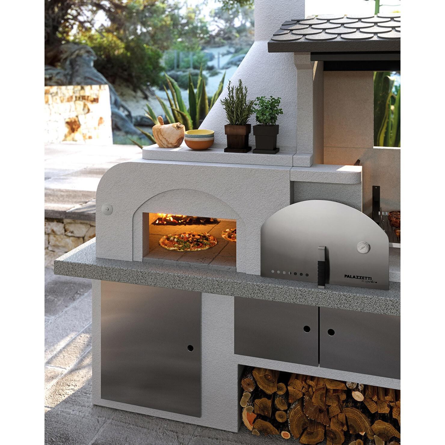 Vrtni kamin Palazzetti Antille je prava atrakcija za vsak vrt, saj ponuja veliko površino za peko na žaru in vgrajeno krušno peč. Njegova zasnova ustvarja poletni ambient, zato je že na prvi pogled privlačen kakovosten izdelek. Stransko kurišče omogoča hkratno peko na žaru in pekaču, kar zagotavlja prilagodljivost pri kuhanju na prostem. Ognjišče je enostavno za polnjenje z drvmi in ima vzdržljivo jekleno košaro za ogenj. Krušna peč z dimnikom je nameščena na levi strani, medtem ko je prostoren pokrit prostor za peko na žaru na desni strani. Ta zunanja kuhinja, zasnovana s pozornostjo do podrobnosti, na vašem dvorišču izžareva italijanski šarm.