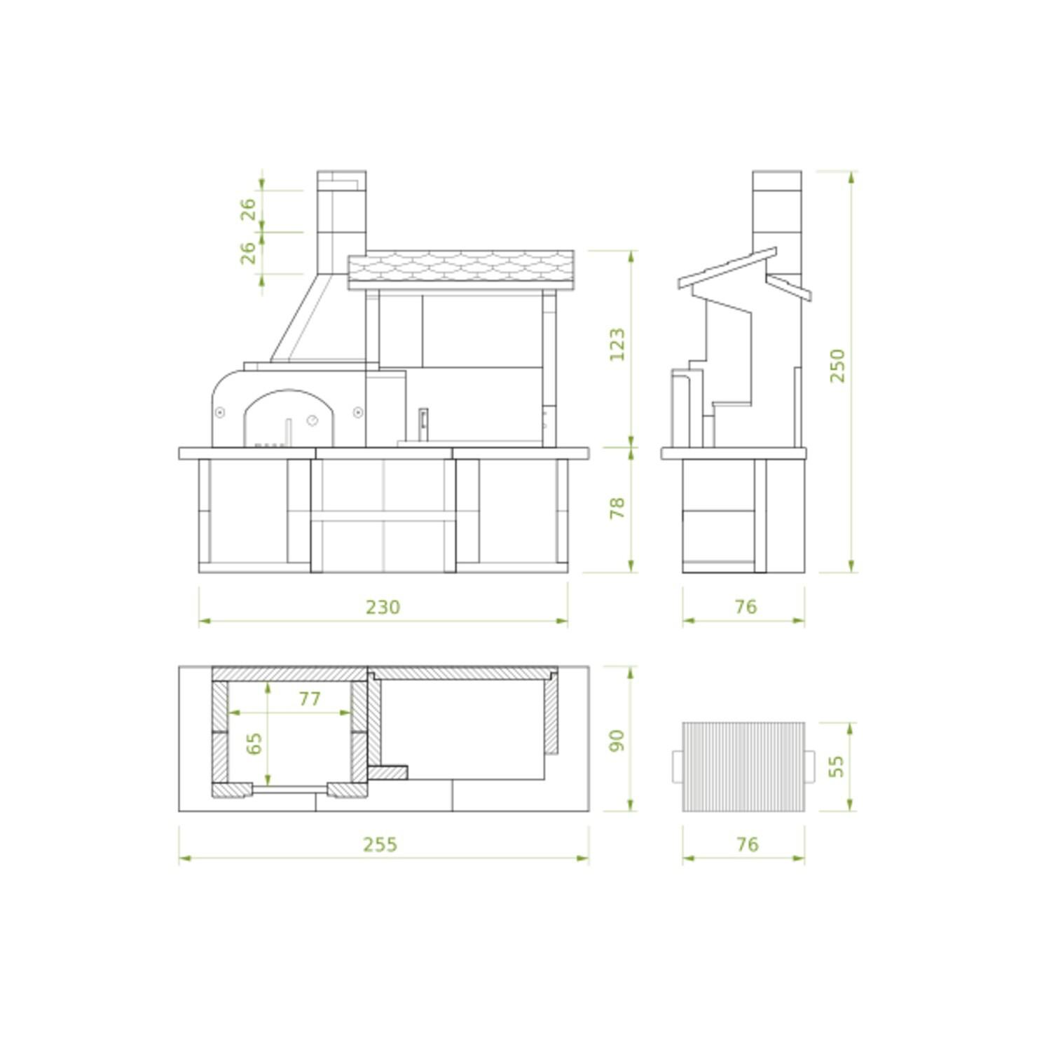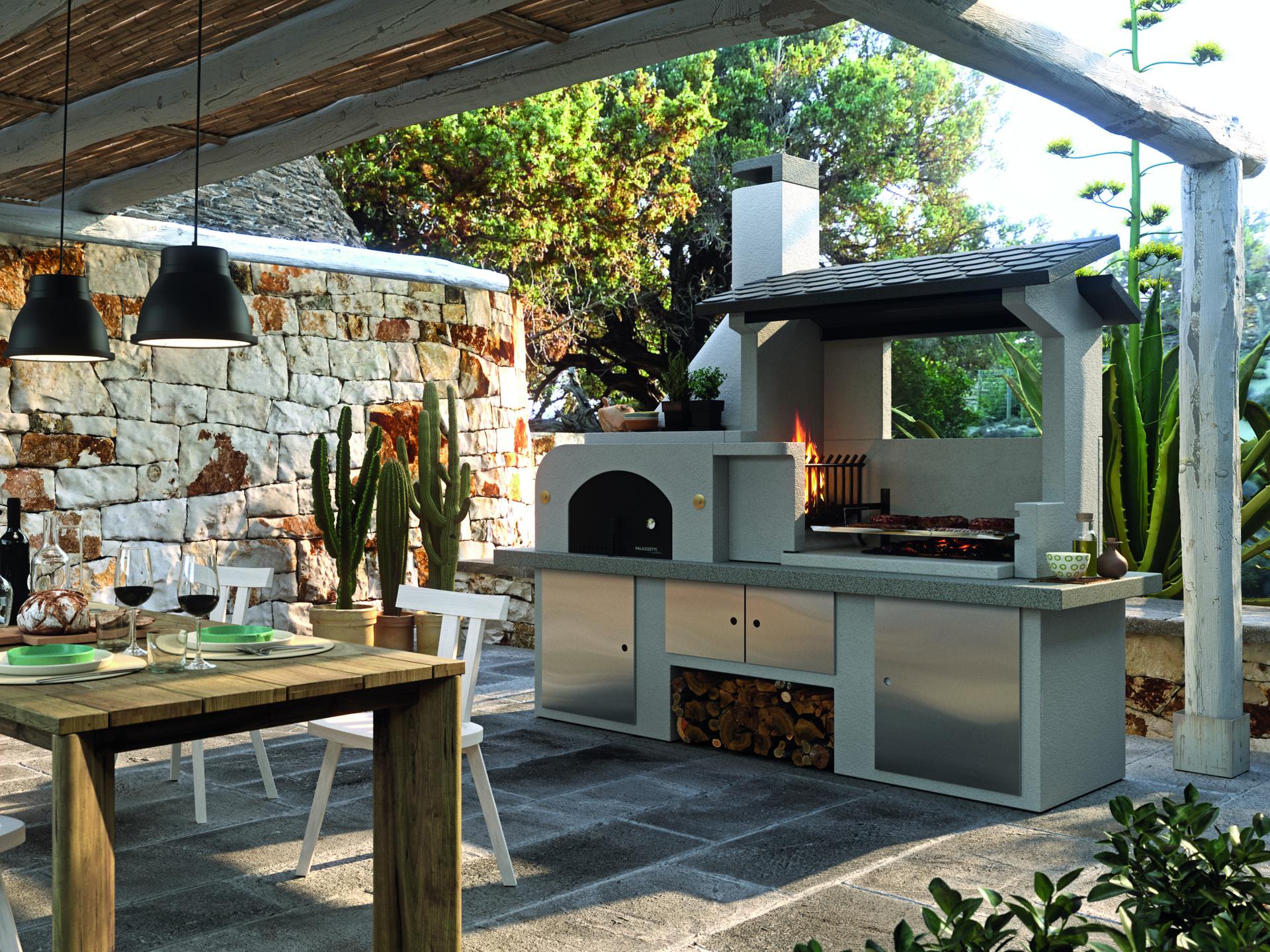 Vrtni kamin Palazzetti Antille je zasnovan za stalno namestitev, kar zagotavlja robustnost in dolgo življenjsko dobo. Izdelan je iz visokokakovostnih materialov, zato je odporen na vročino in vremenske vplive. Vgradna pečica ima šamotno podnožje iz šamotne opeke in vrata iz nerjavnega jekla, opremljena z vgrajenim termometrom. Delovna površina je izdelana iz poliranega granita Marmotech, ki je visoko toplotno odporen marmorni kompozit. Streha nad prostorom za peko na žaru je izdelana iz Cemipiùja, posebnega cementnega materiala, znanega po svoji odpornosti proti vremenskim vplivom in obrabi. Z ustreznim vzdrževanjem bo ta vrhunski izdelek dolga leta ohranil svoj eleganten videz.