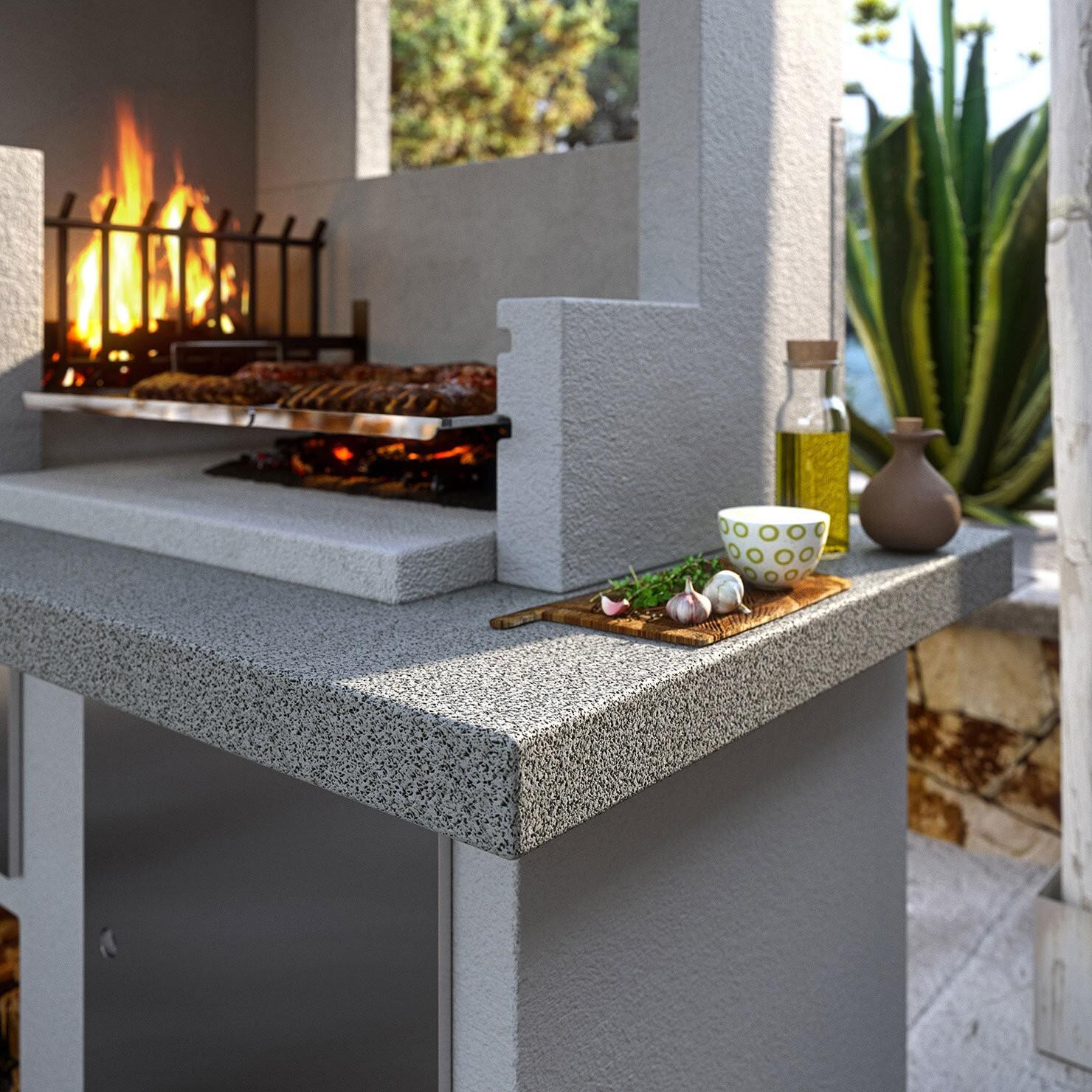V podstavku so prostori za shranjevanje pripomočkov za žar, posode ali drv. Te predale lahko zaprete z dodatnimi vrati, ki so na voljo v različnih slogih. Struktura je izdelana iz cementnega konglomerata in je na voljo brez barve, kar omogoča dodelavo po meri.