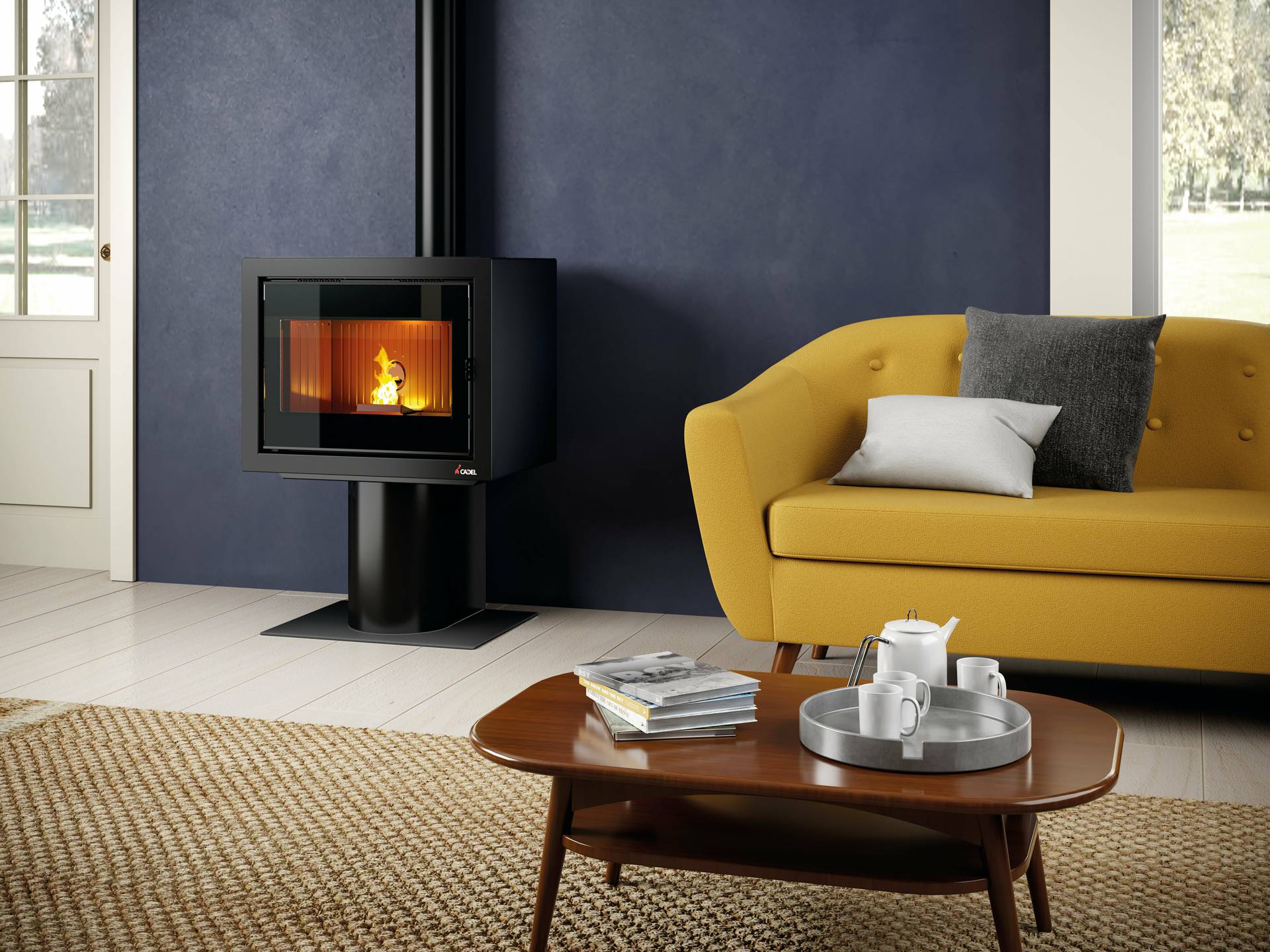 Nova hermetično zaprta peč, ki je videti kot fino pohištvo, z velikim sprednjim oknom, ki omogoča, da je ogenj glavna zvezda predstave. Kurišče iz litega železa, moč 9 kW za večje prostore in priključek dimnika na zgornji strani.