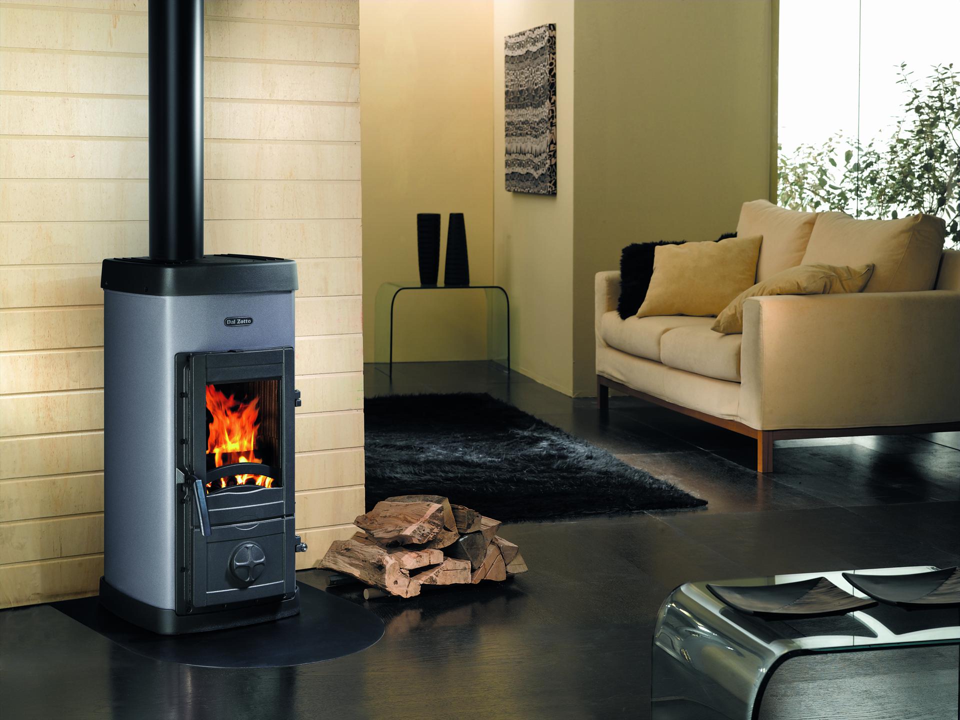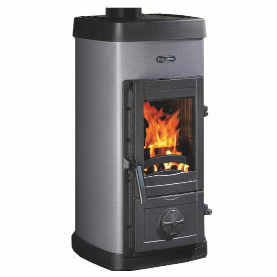 Peč na drva z oblogo iz emajliranega jekla. Primarni in sekundarni zrak. Dvojno izgorevanje. Velika kurilna vrata. Zgornji del, podnožje, vrata iz emajliranega litega železa.