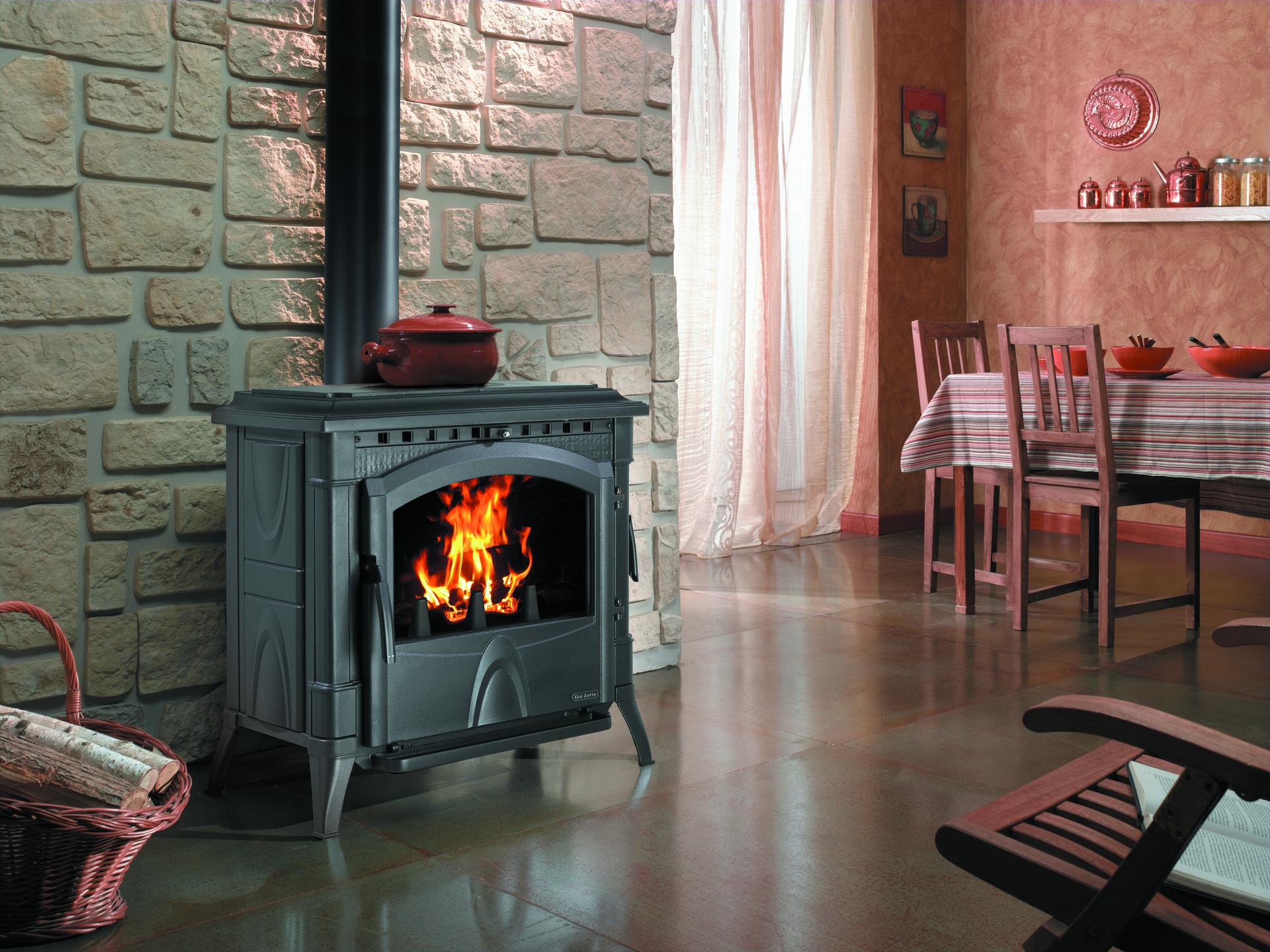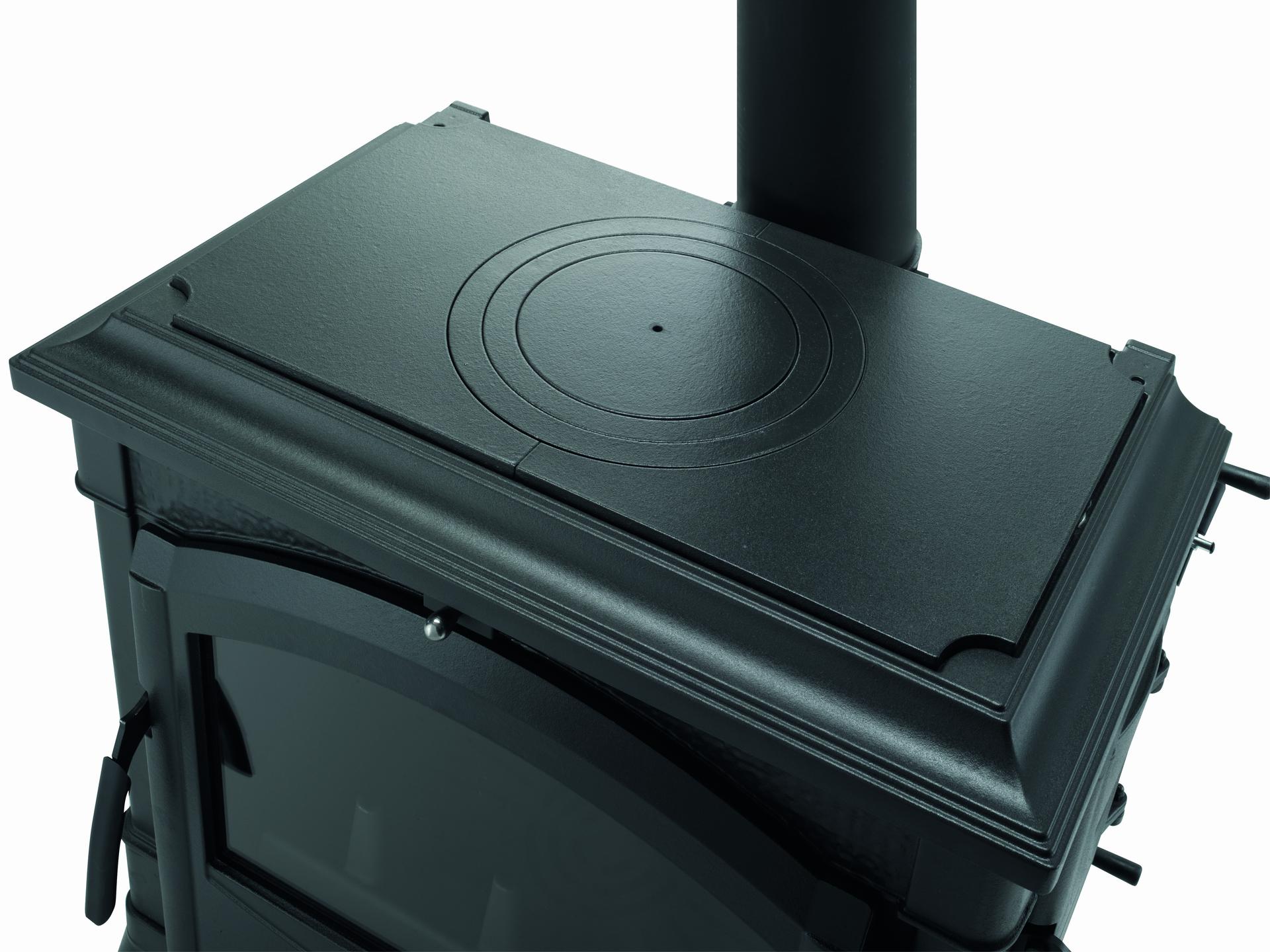 Peč je v celoti izdelana iz litega železa s stranskimi vrati za nalaganje drv. Dvojno izgorevanje s primarnim in sekundarnim zrakom.
