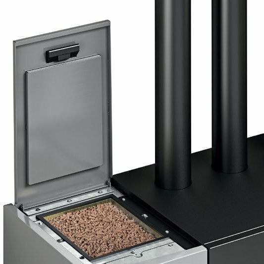 Hermetično zatesnjen generator vročega zraka s štirimi neodvisnimi sistemi kanalov, ki jih je mogoče priključiti na vrhu ali zadaj. Velik zalogovnik za pelete z motorjem z neprekinjenim polžem za zagotavljanje tihega delovanja. Jekleno ohišje z visoko stopnjo izolacije in dvojnimi vrati, opremljenimi z odstranljivim ročajem. 20 stopenj delovne moči za boljše prilagajanje zahtevam ogrevanja. Priloženi so štirje senzorji in radijski upravljalnik z možnostjo polnjenja.