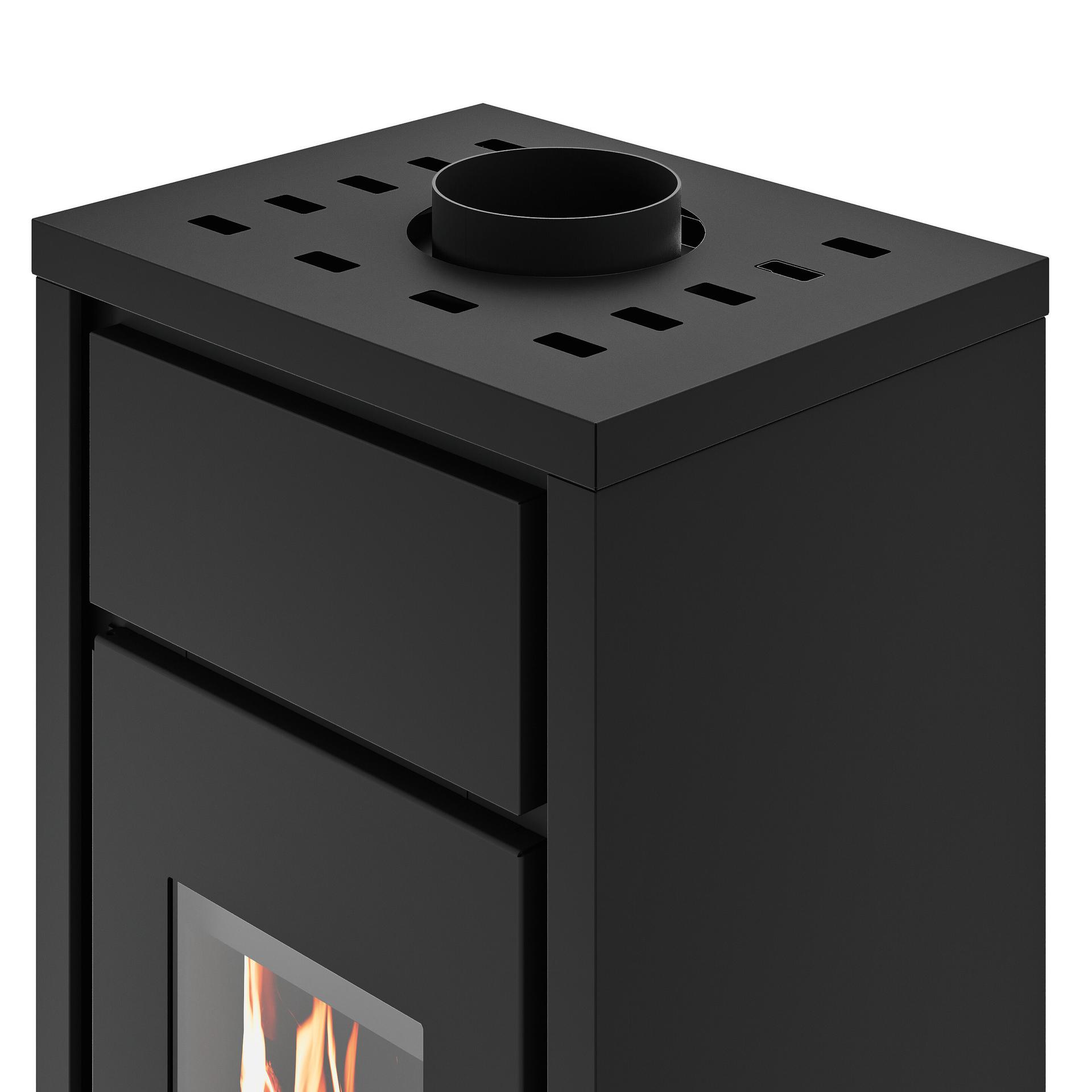 Kompaktna in enostavna zasnova z jeklenim ohišjem. Zgorevalna komora iz vermikulita in regulacija zgorevalnega zraka. Odstranljiv predal za pepel za zbiranje pepela v ločenem predelu. Priključek za dimnik na zgornjem delu.