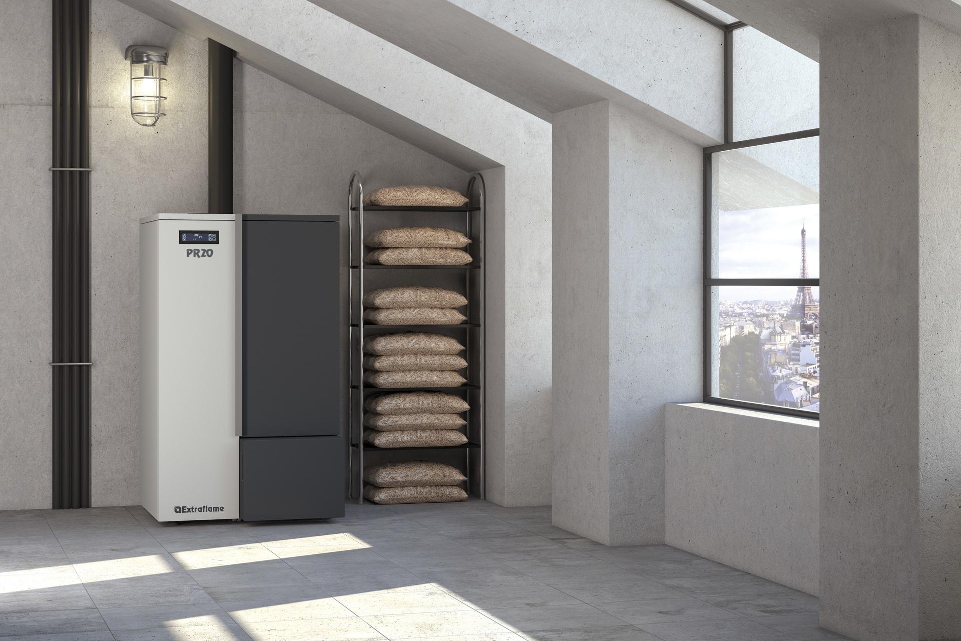 Kotel na pelete z zbiralnikom pepela in samočistilnim gorilnikom. Inovativni adaptivni sistem za prilagajanje in izenačevanje dovoda zgorevalnega zraka. Hidravlični sistem s priključki na vrhu, vključno z obtočno črpalko s PWM, toplotno in tlačno varnostjo, varnostnim ventilom za zrak in ekspanzijsko posodo.