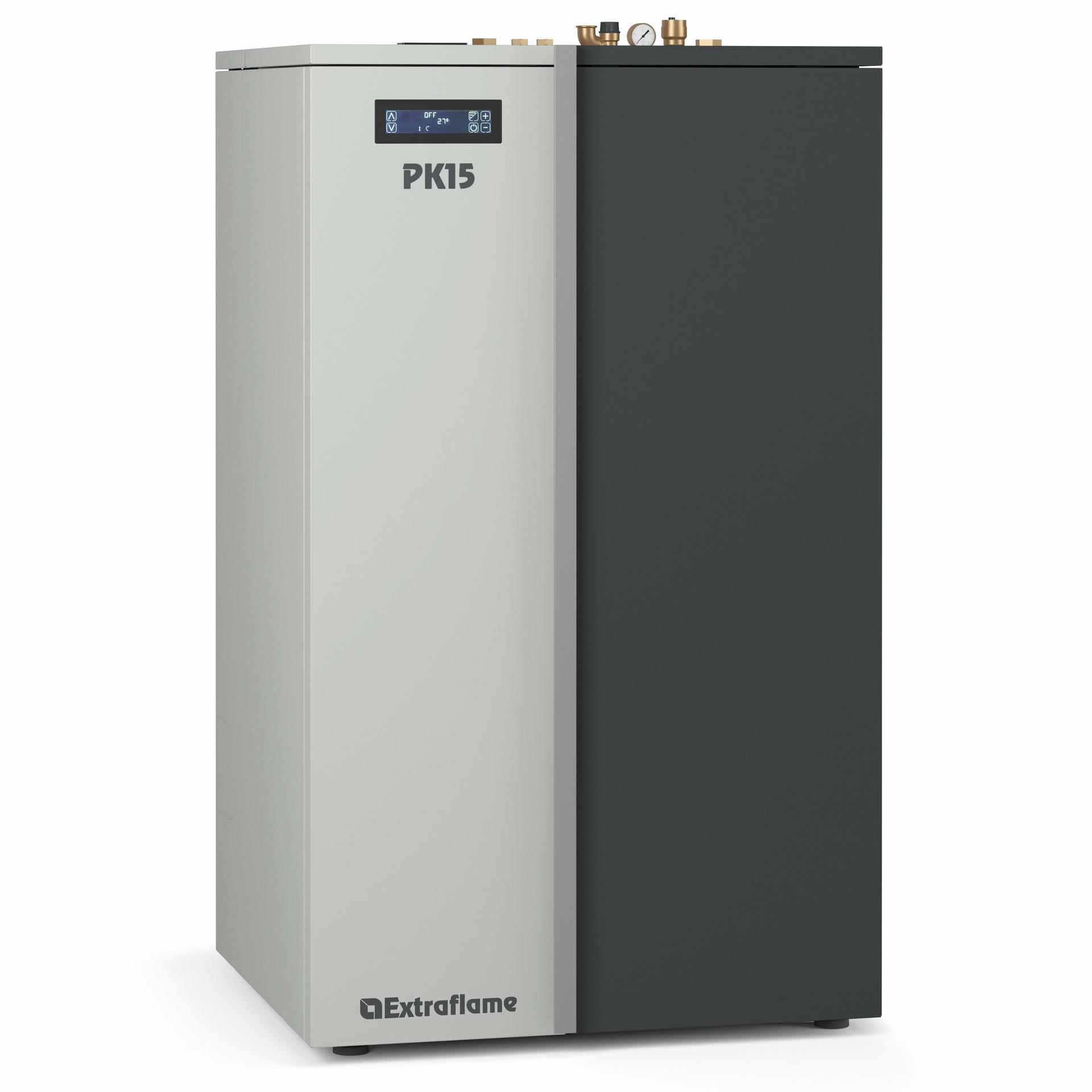 Zgorevalna komora iz debelega jekla, vrata in posoda kurišča iz litega železa. Samočistilna gorilna posoda z brezkrtačnim motorjem. Hiter vžig s keramično vžigalno tuljavo. Inovativni prilagodljivi sistem za prilagajanje in izenačevanje dovoda zgorevalnega zraka. Plaščni in cevni izmenjevalnik s samodejnim čiščenjem.