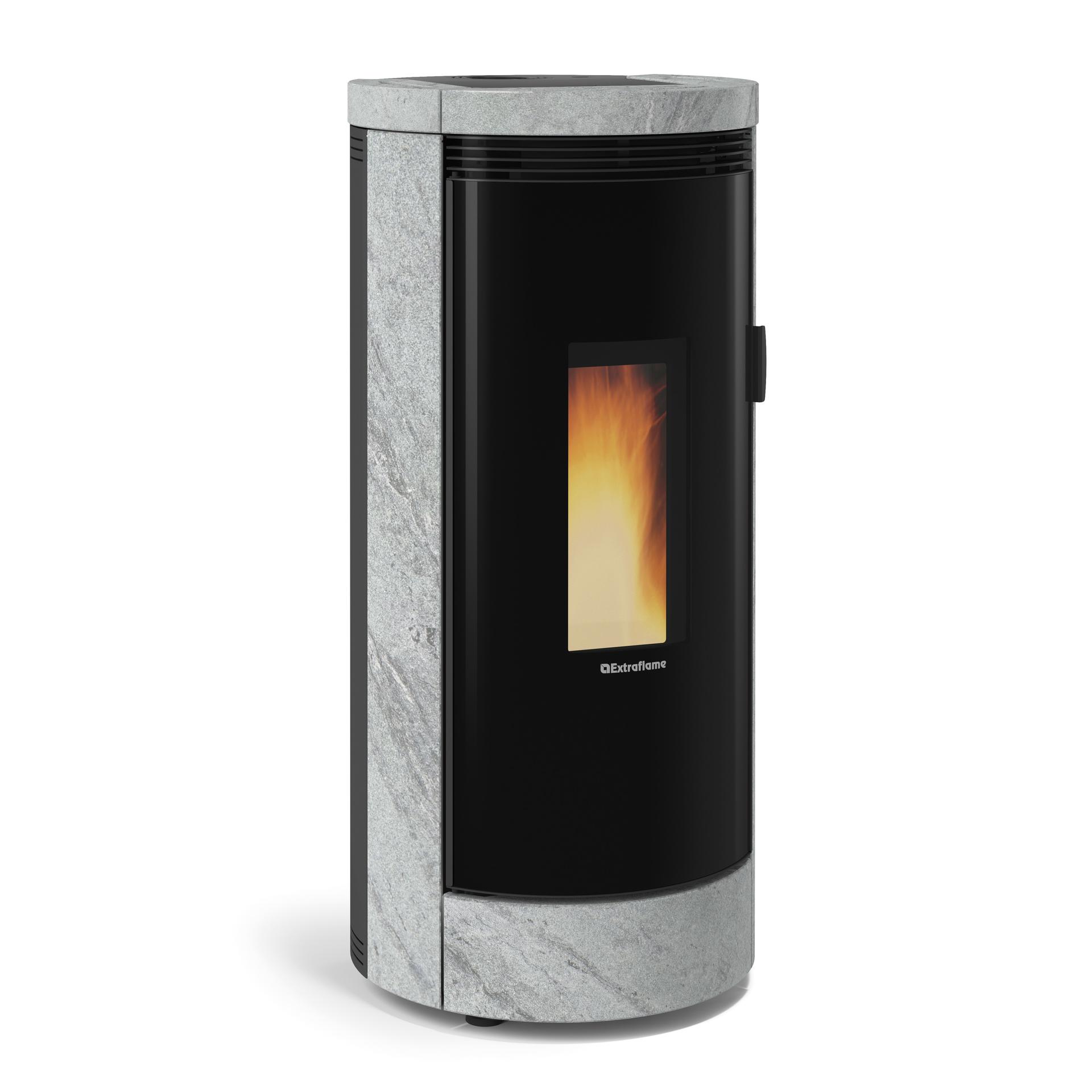 Z edinstvenim dizajnom in ukrivljeno obliko je ta peč odličen element vašega notranjega pohištva, še posebej obloga iz naravnega kamna, ki ji doda plemenit klasičen pridih. Vrata kaminske peči so dvojna, od katerih imajo zunanja vgrajeno ukrivljeno kaljeno steklo.