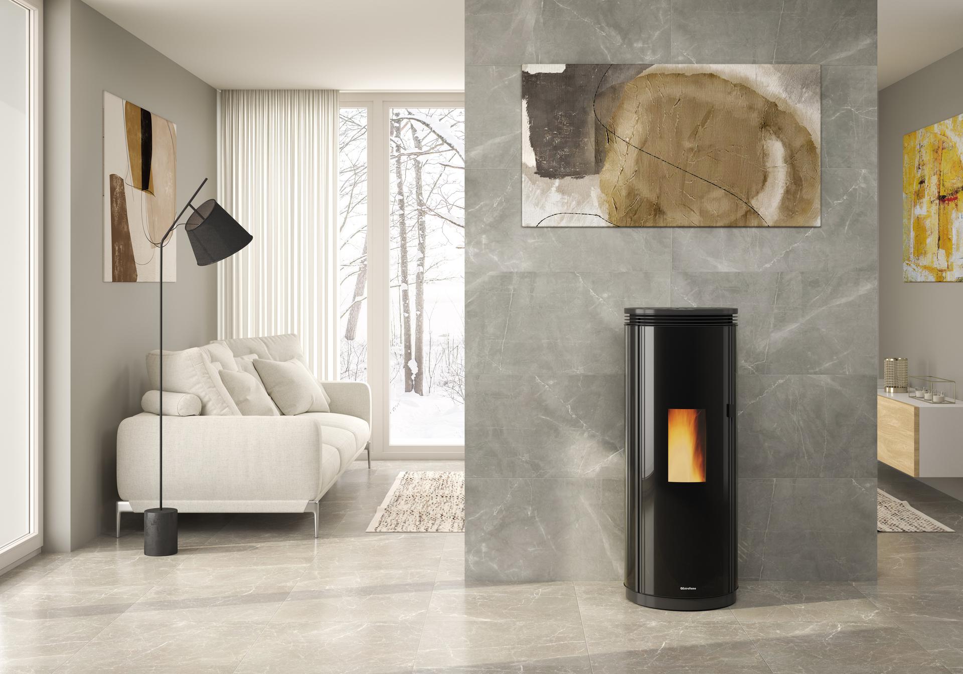 Peč na pelete La Nordica Extraflame Pamela z zaobljeno obliko in elegantnimi linijami predstavlja prestižno zasnovo. Obloga iz kaljenega stekla doda še več elegance, zato je ta izdelek lahko neprecenljiv del vašega bivalnega prostora. Prednja vrata so dvojna, od katerih so zunanja opremljena z ukrivljenim kaljenim steklom, ki zaključuje vizualno popolnost.