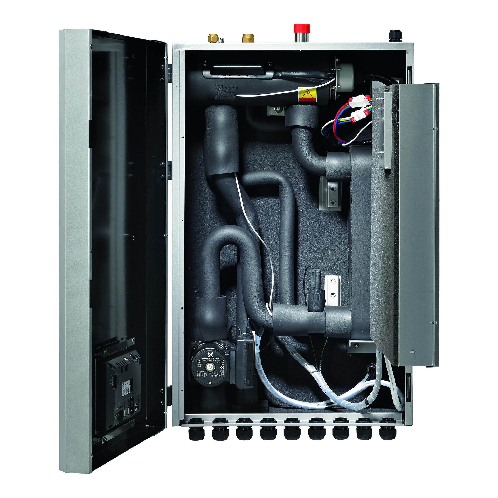 EcoTouch s 4,3-palčnim zaslonom na dotik lahko združuje različne ogrevalne naprave in tako optimizira porabo energije celotnega sistema kot celote. Njegova prefinjena nadzorna logika pametno upravlja komponente sistema in omogoča integracijo z drugimi skupnimi nadzornimi sistemi, da zadovolji kompleksne zahteve različnih aplikacij, za zelo učinkovito delovanje ob čim manjši porabi energije.