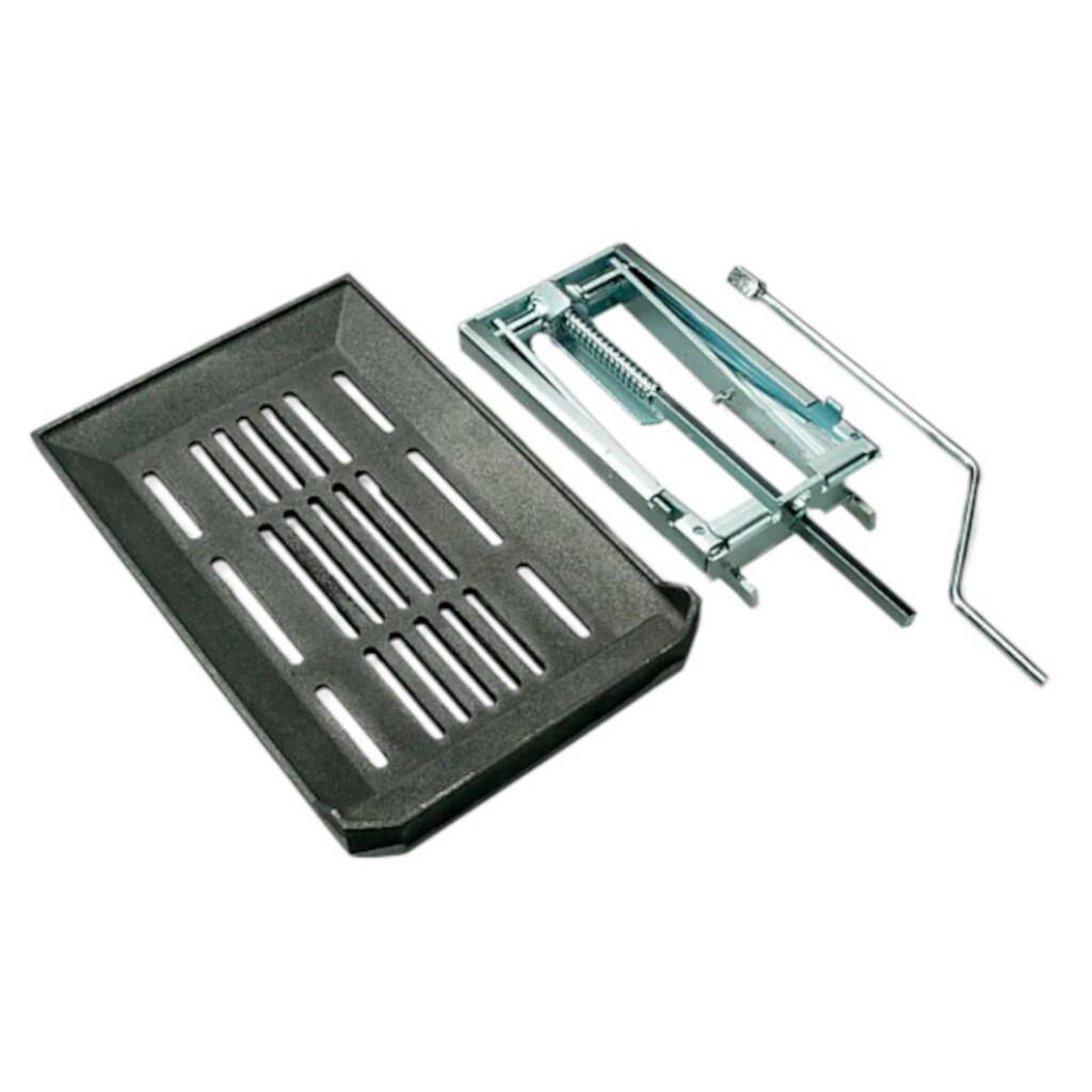Po višini nastavljiva rešetka kurišča iz litega železa.