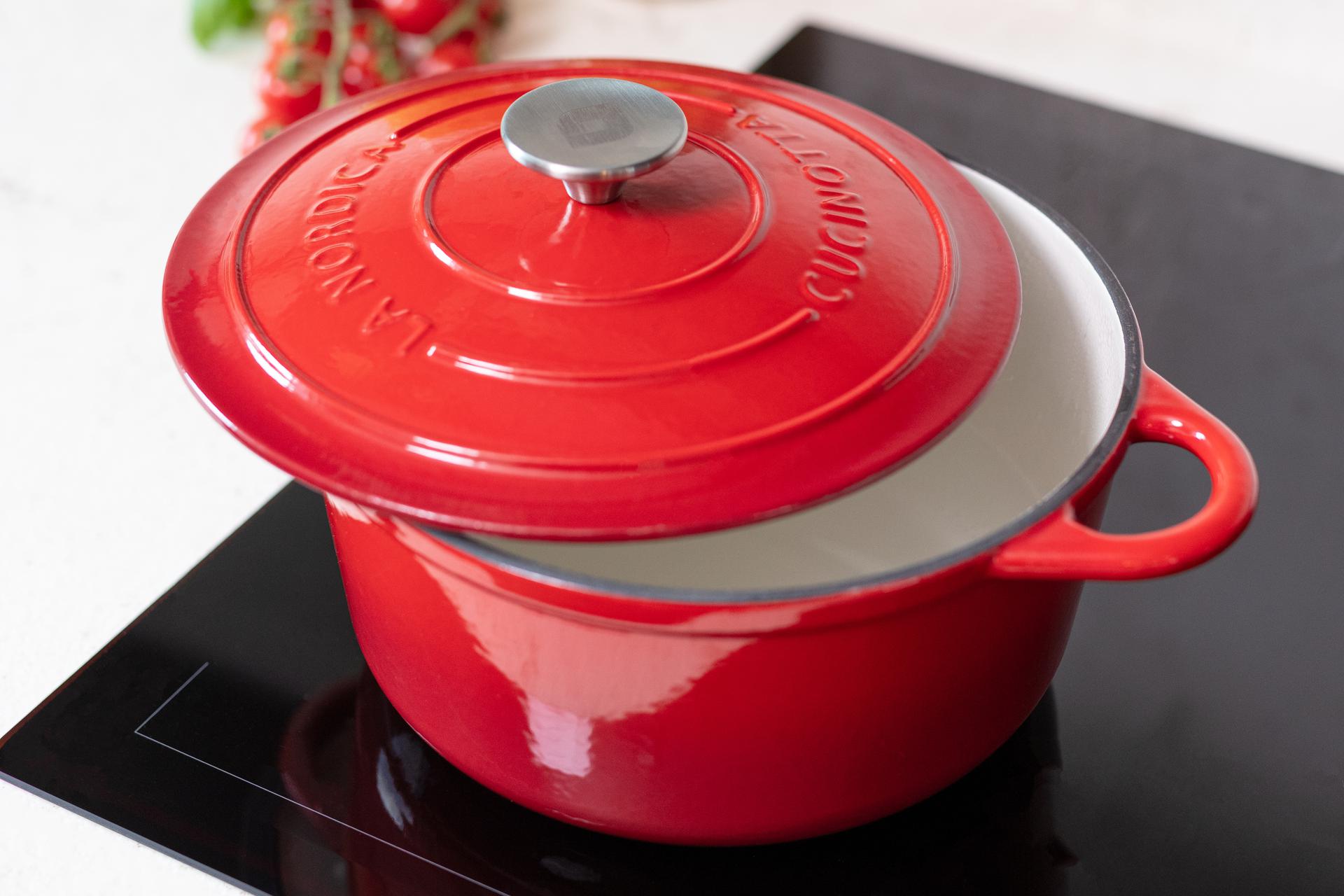 Svetel emajl je še posebej primeren za počasno kuhanje pri srednjih ali nizkih temperaturah, saj zagotavlja enakomerno in uravnovešeno kuhanje, pri katerem se sprostijo pristni okusi hrane. Po vsaki uporabi ga je enostavno očistiti, zato je kuhanje užitek brez težav.