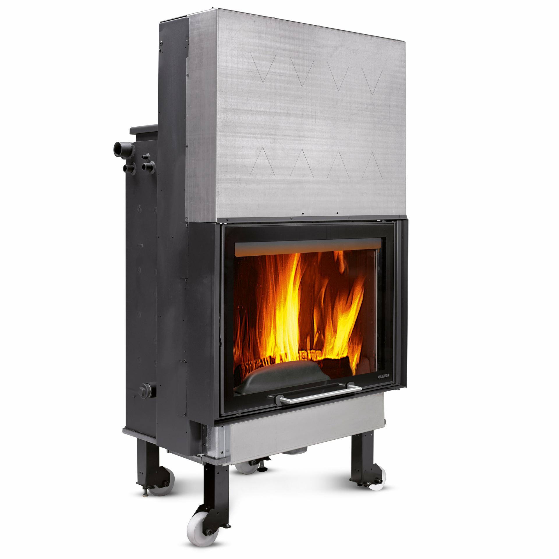 Vodni kamin na drva z varnostno napravo DSA (ventil DSA ni vključen). Notranja obloga kurišča iz litega železa in Nordikerja. Izginjajoče steklo.