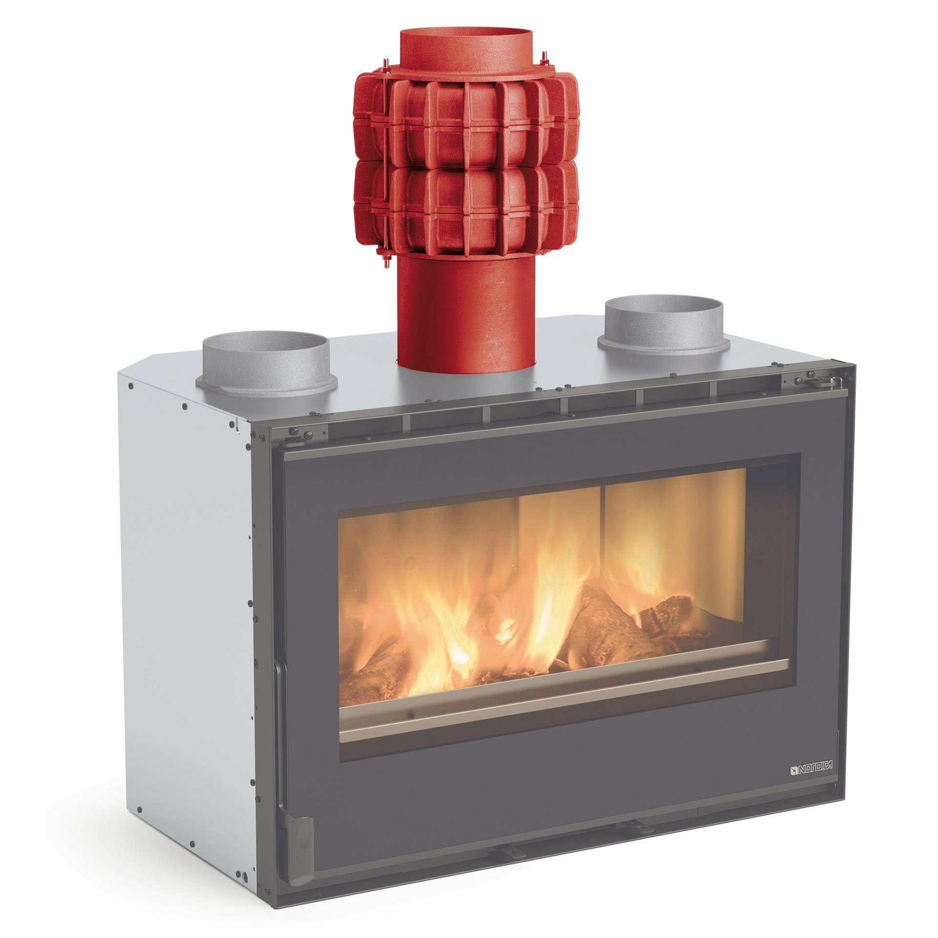 Kaminski vložek na drva s panoramskim pogledom na ogenj in sistemom Power Radiant System (PRS). Nizka rob za najboljši pogled na plamen. Notranja obloga ognjišča iz litega železa in Nordikerja. Vrata kurišča in rešetka iz litega železa. Obračljiva vrata s keramičnim steklom. Nastavljiv primarni in sekundarni zrak za boljši nadzor zgorevanja s sistemom naknadnega zgorevanja za nizke emisije. Zunanji dovod zraka.