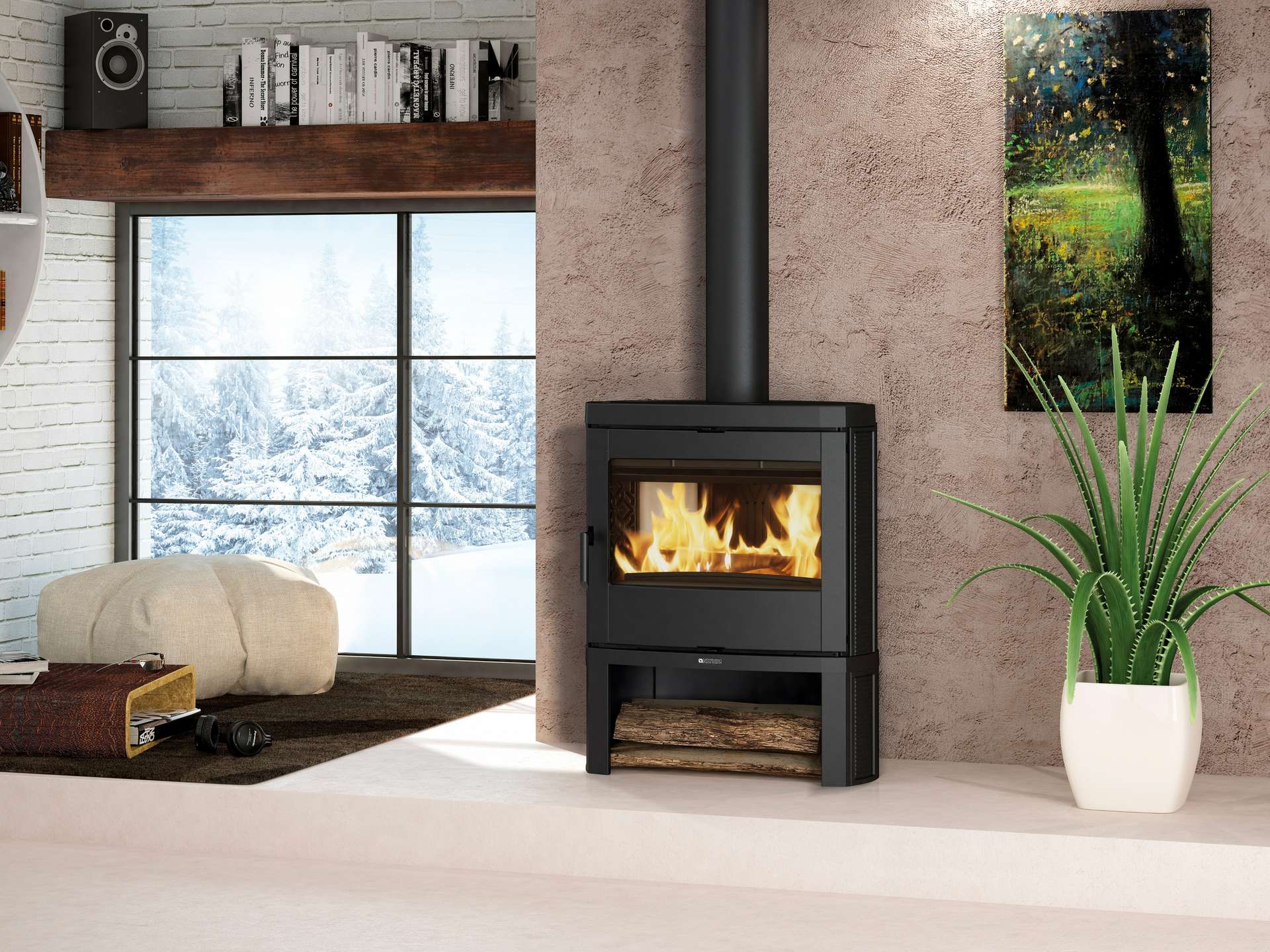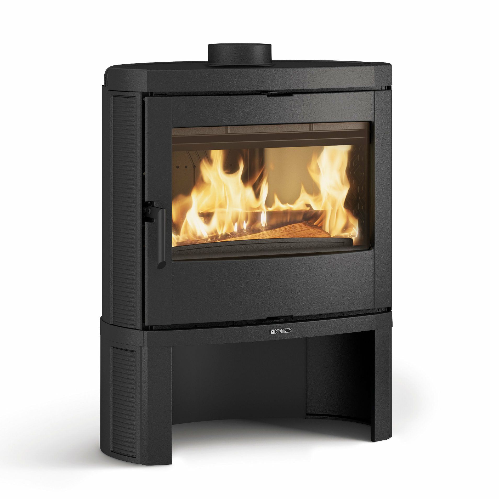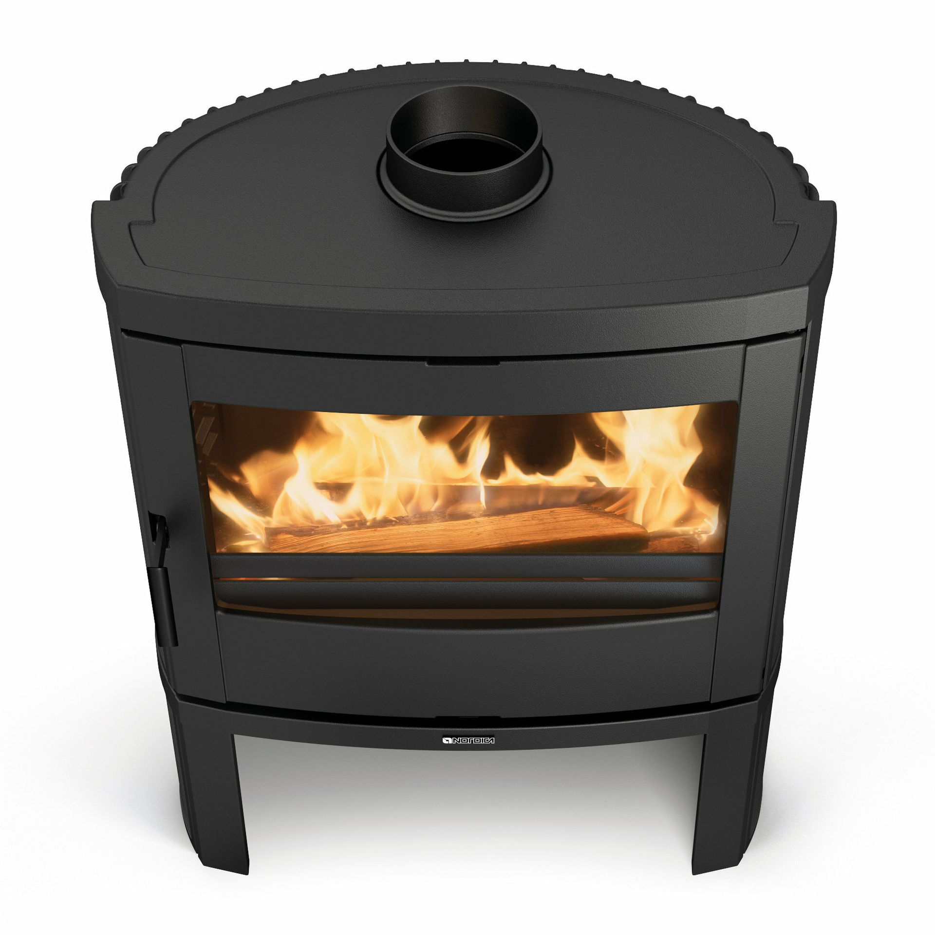 Litoželezna peč na drva s širokim pogledom na ogenj. Široko kurišče omogoča nalaganje polen z dolžino do 50 cm. Keramično steklo. Notranja obloga kurišča iz litega železa in Nordikerja.