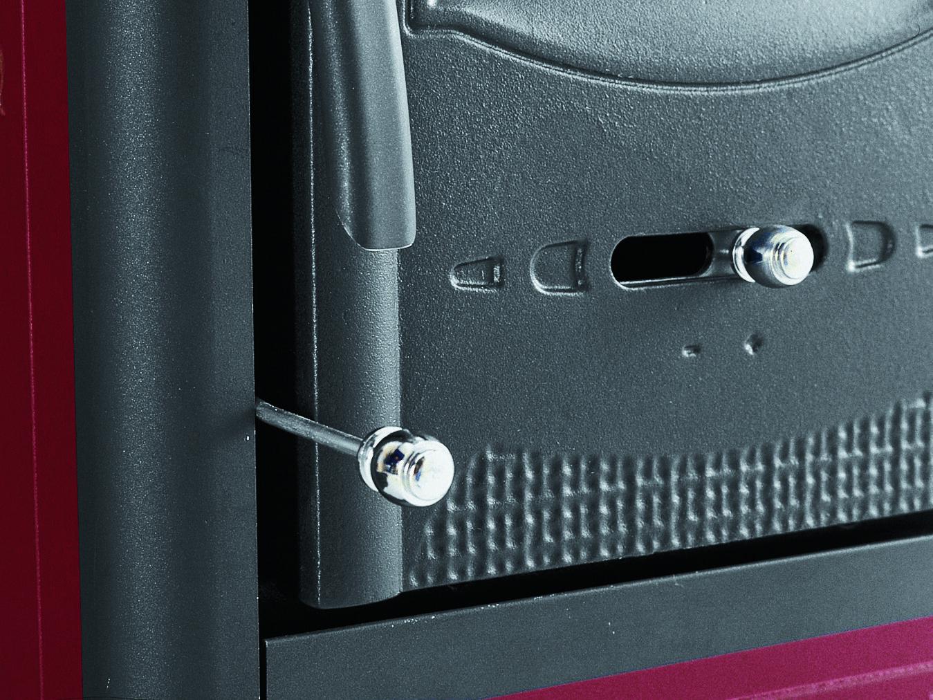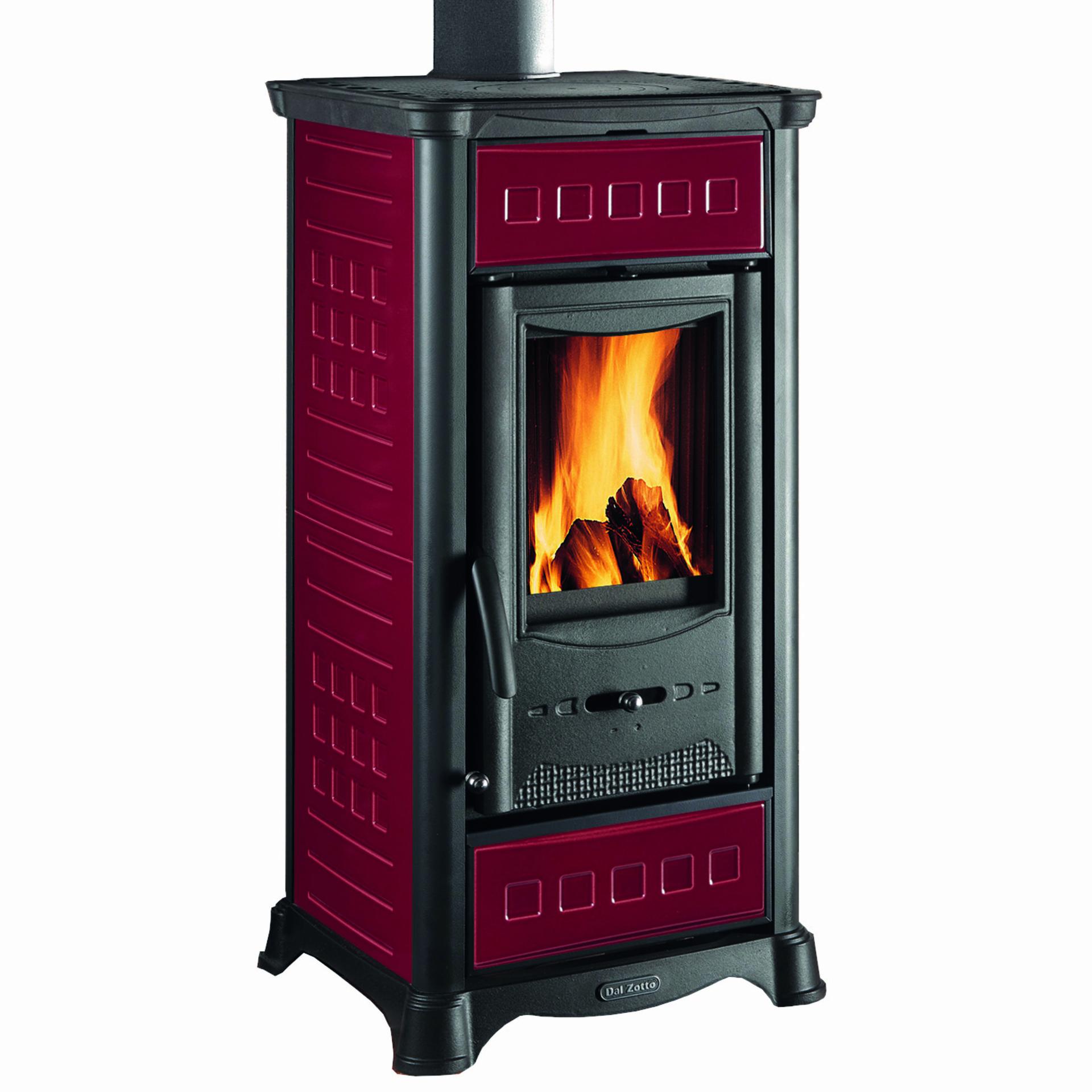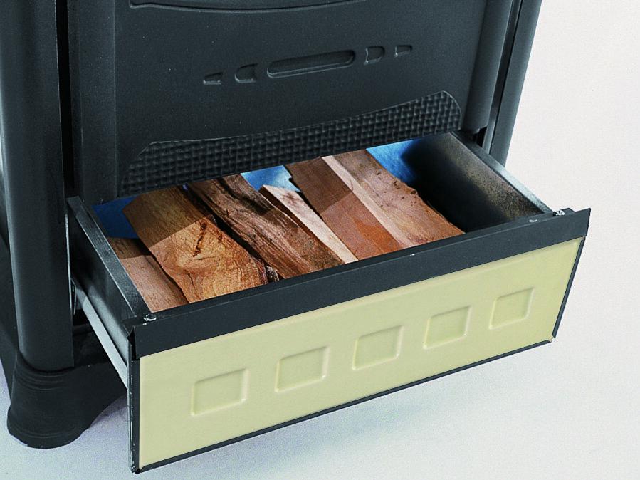 Peč na drva z oblogo iz majolike in emajlirano pečico. Kuhalna plošča, podstavek in vrata so izdelani iz emajlirane litine. Primarni in sekundarni zrak. Dvojno izgorevanje. Velik predal za drva.