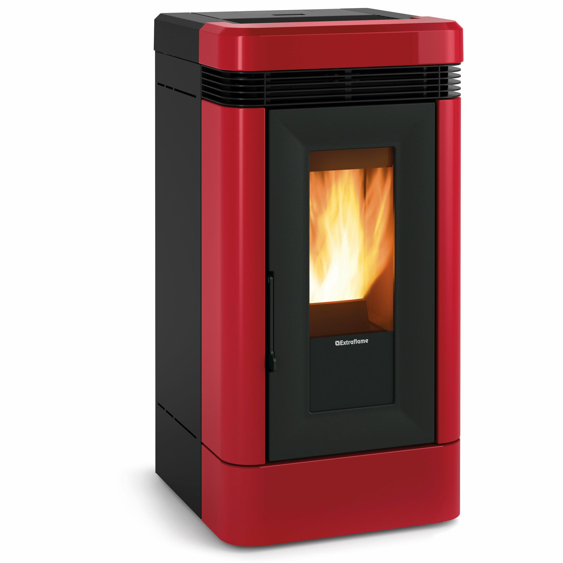 Kaminska peč na pelete z ventilacijo, sevalnim površinskim toplotnim izmenjevalnikom in hermetičnim rezervoarjem. Ognjišče, vrata kurišča in žerjavica iz litega železa. Cevni in plaščni izmenjevalnik.