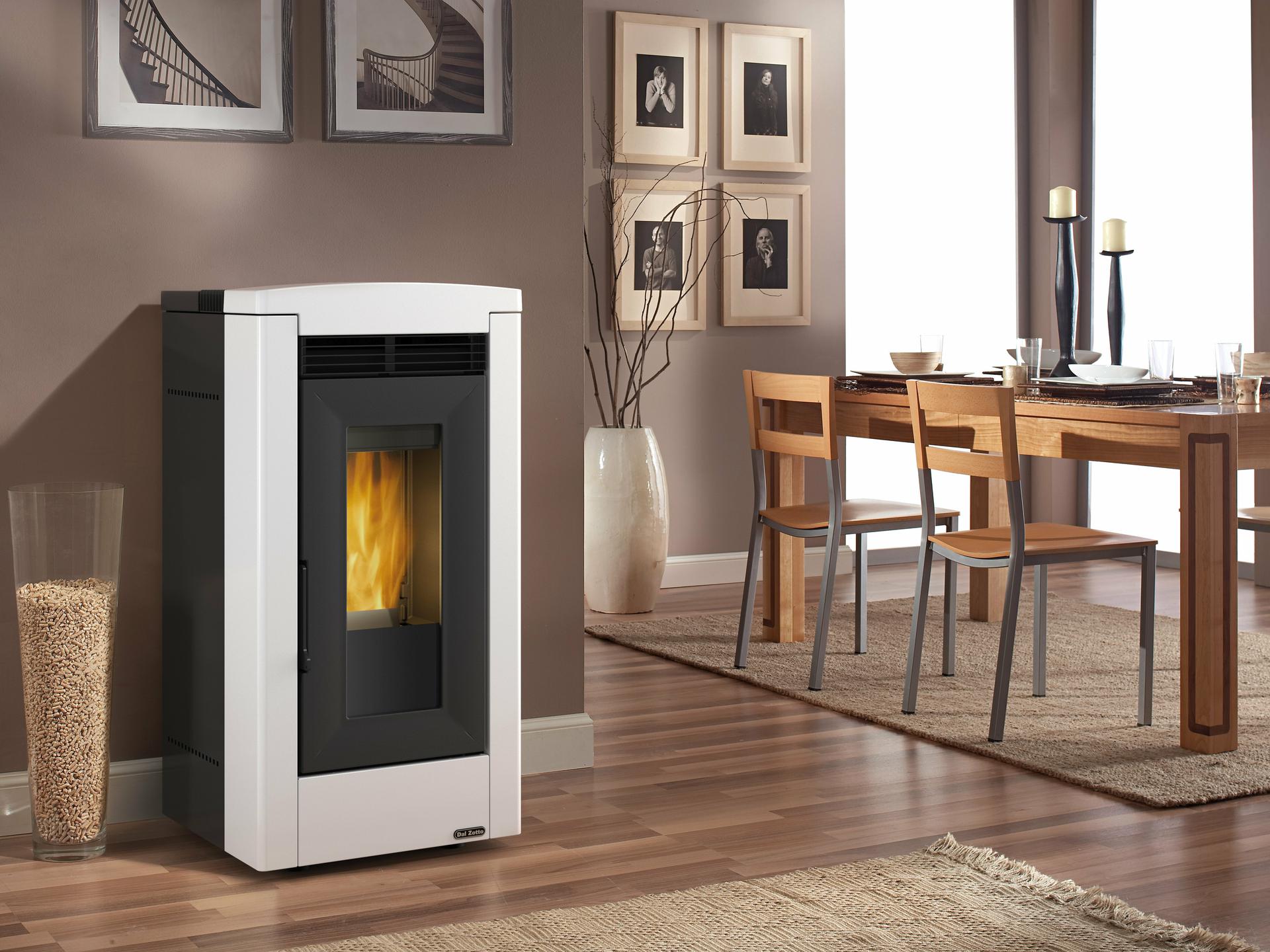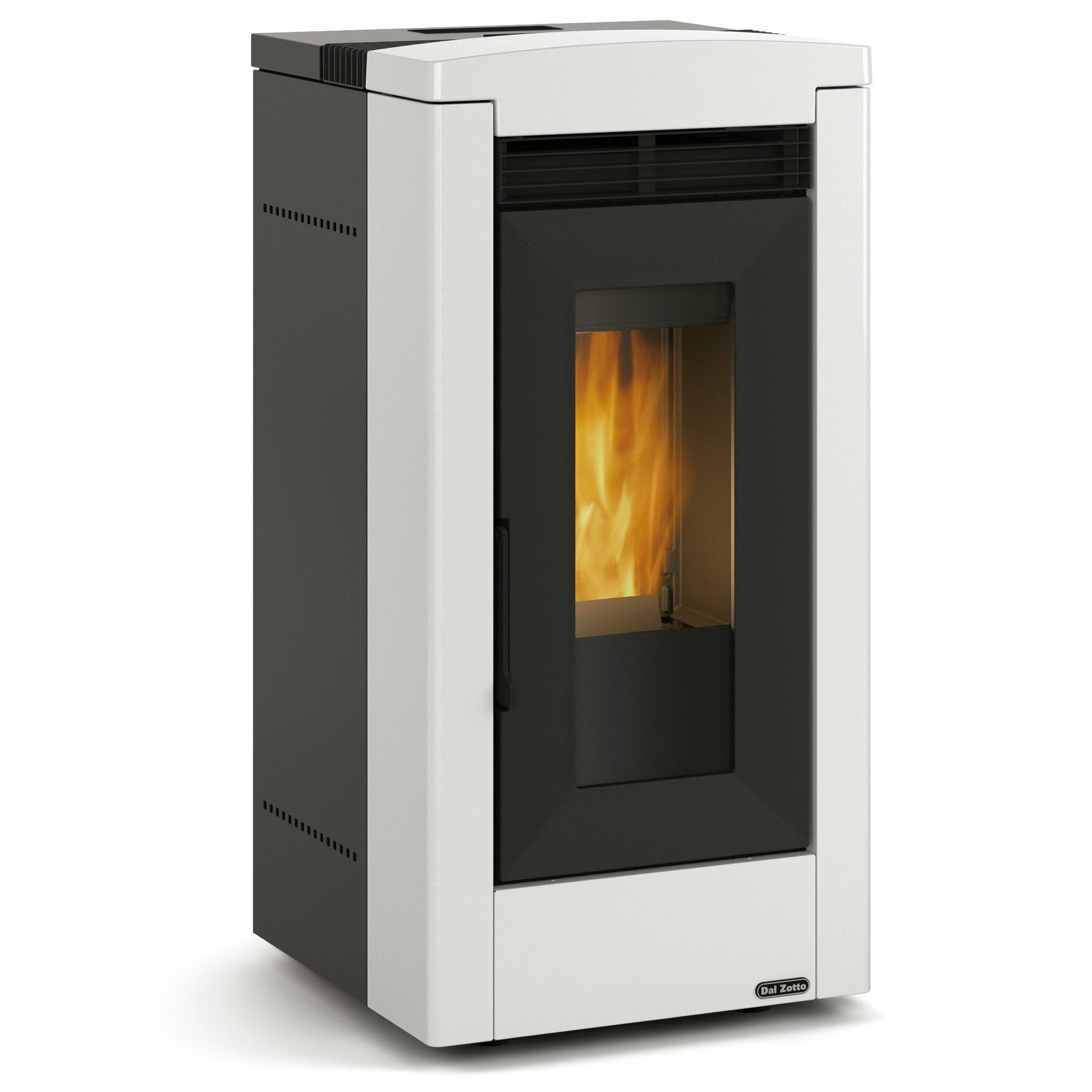 Peč na pelete z zunanjo oblogo iz majolike in sprednjim vpihom toplega zraka s funkcijo Comfort. Nadzor tlaka s sistemom "Diferencialni sistem" na dveh različnih točkah zgorevalne komore za večjo varnost. Nov zaslon Black Mask z vgrajeno povezavo Wi-Fi, ki omogoča upravljanje na daljavo z novo aplikacijo "Total Control 2.0". Litoželezno ognjišče, vrata in odstranljivo kurišče. Do 8 metrov dolgi kanali z 80 mm dvojnim odvodom na zadnji strani.