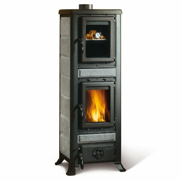 Peč na drva s pečjo iz emajliranega jekla in zunanjo oblogo iz majolike ali naravnega kamna. Vrata, zgornji del in okvir iz emajlirane litine. Notranja obloga ognjišča iz litega železa. Keramično steklo.