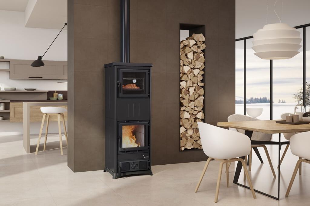 La Nordica Nova Forno je štedilnik na drva z veliko emajlirano pečico za pripravo vseh vrst hrane, tudi pice. Zunanja obloga je iz pobravane pločevine. Pokrov, vrata in podstavek so iz emajlirane litine. Spodnja vrata, za praznjenje predala za pepel. Preprosto pregled in zamenjava obloge zgorevalne komore iz Nordikerja.