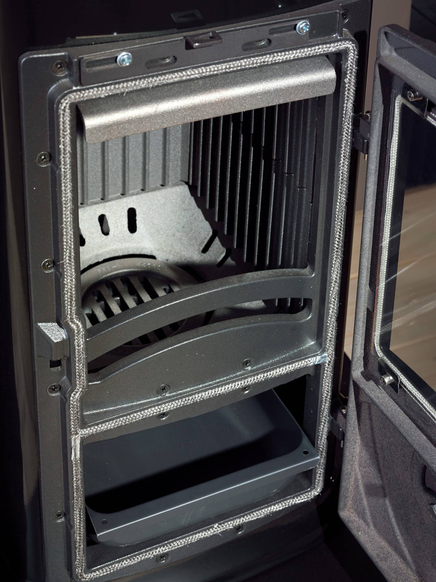 Sistem predgretega zraka, ki odstranjuje morebitne usedline s stekla vrat kurišča.