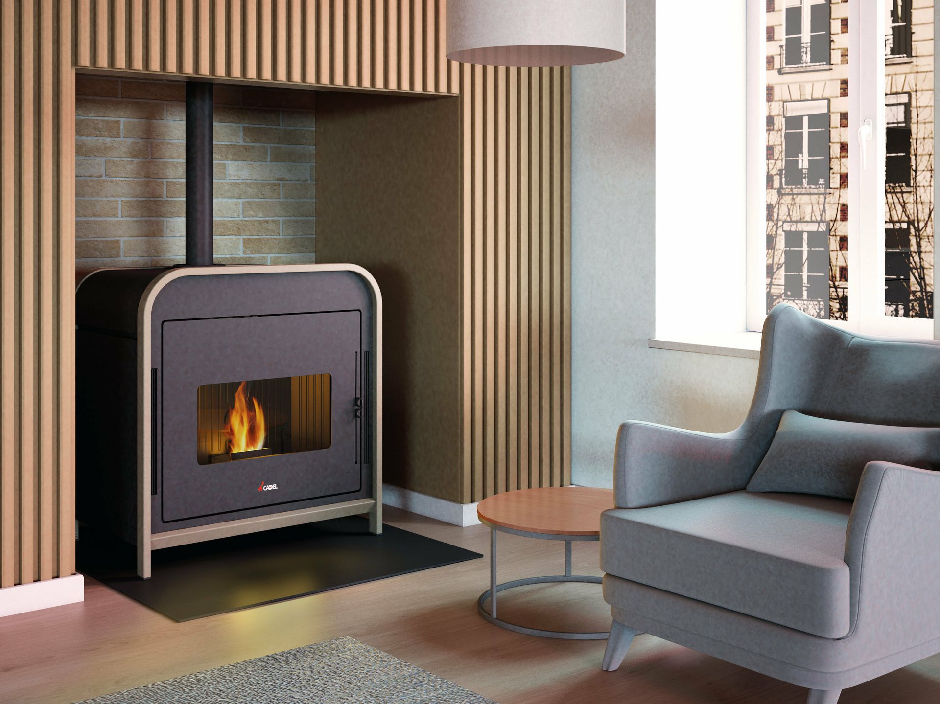 Prefinjen in metropolitanski slog, širok pogled na plamen in elegantne noge. Frame 9 se harmonično ujema tako s sodobnim kot rustikalnim okoljem in omogoča ogrevanje več prostorov z opcijskim kompletom za cevni razvod toplega zraka.
