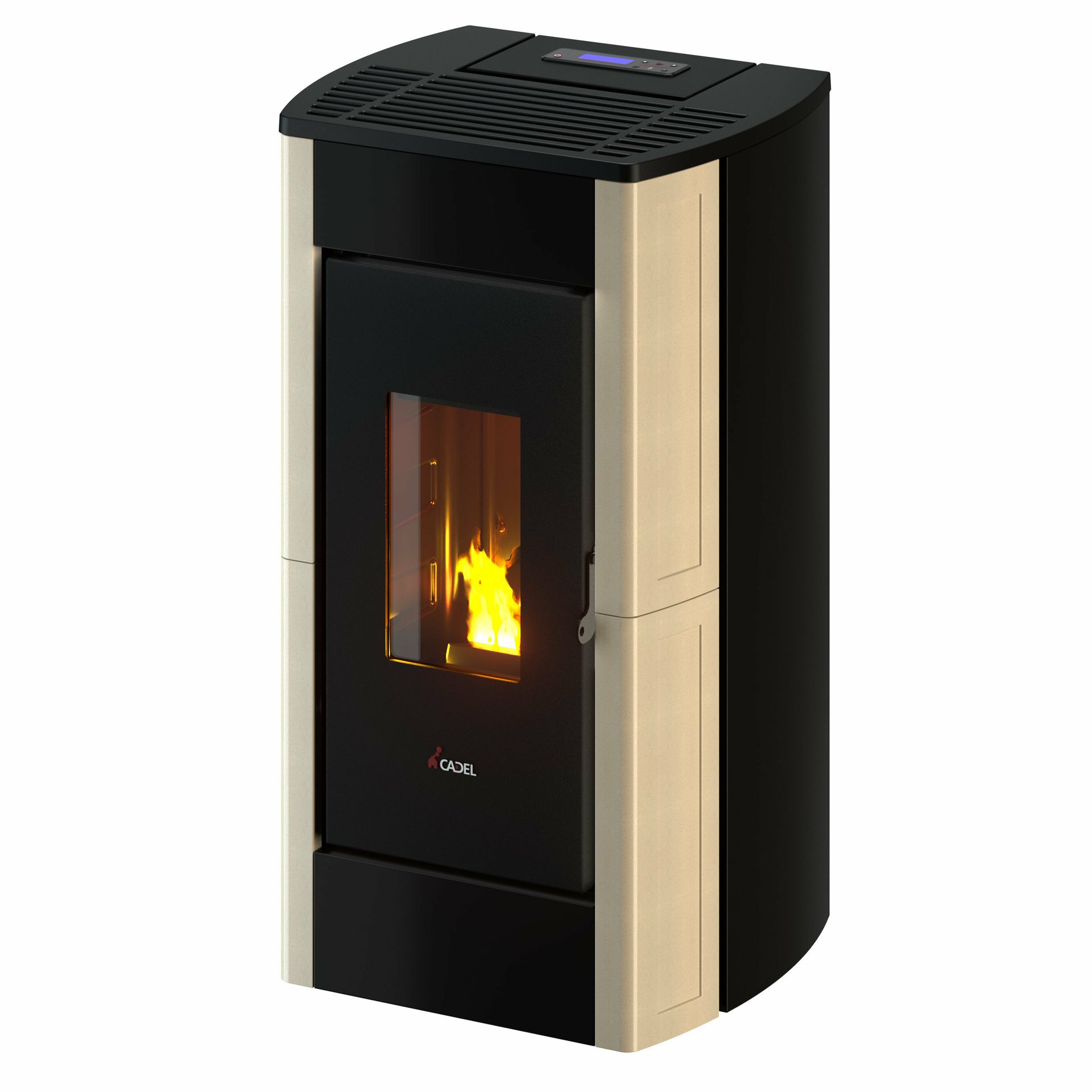 Peč na drva pelete z obnovljenim videzom z novo oblogo jeklenih stranic in z novo obliko litoželeznega zgornjega dela ter z inovativnim kuriščem. Serijsko je na voljo hermetična komora; keramične stranice.