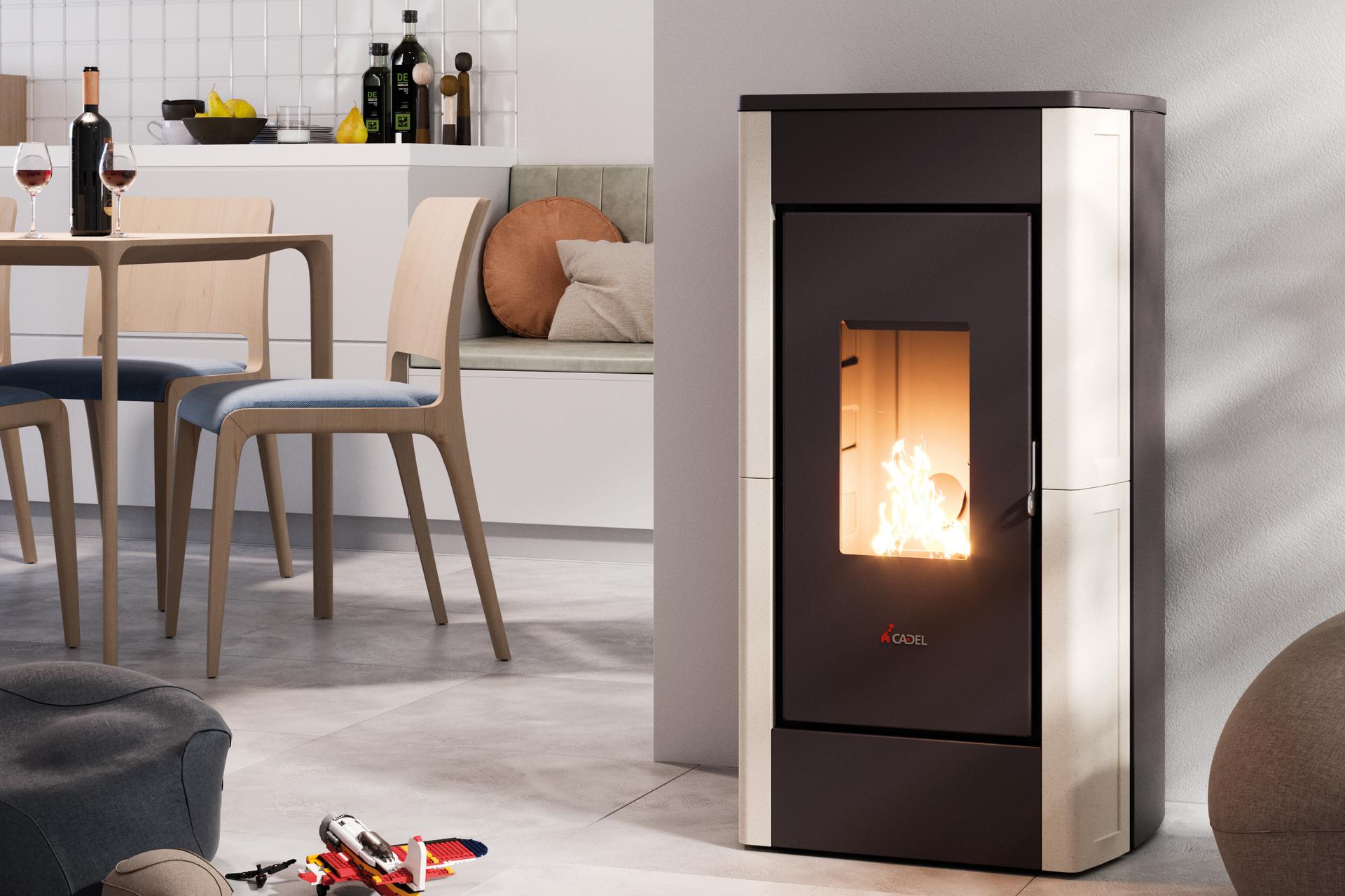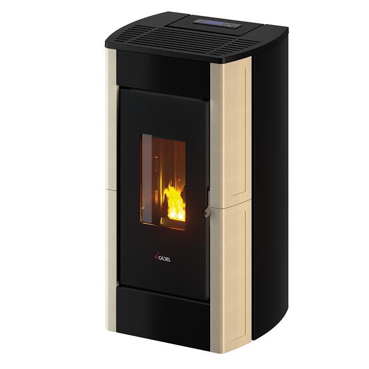 Peč na pelete Cadel Perla je dobila novo podobo z novimi oblogami z jeklenimi stranicami in novimi oblikami za litoželezno ploščo, dodana pa je tudi inovativno kurišče. Hermetična komora je standardna. Prevleka je iz lakiranega jekla s keramičnimi stranicami.