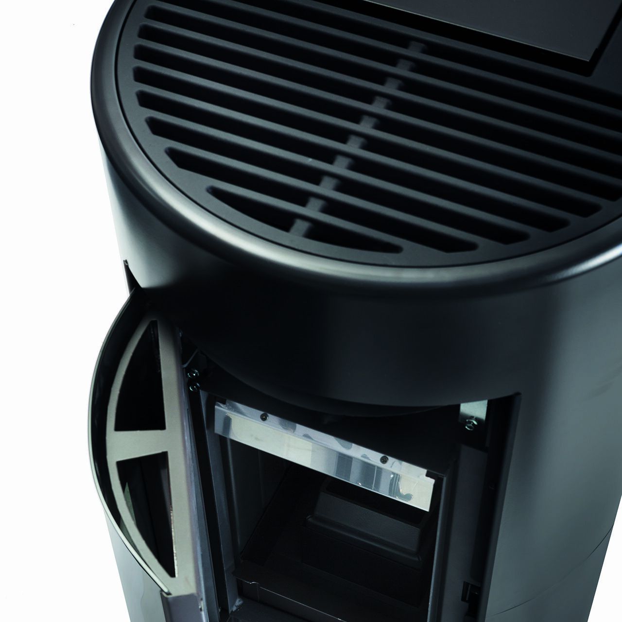 Mehke linije in visokotehnološki materiali oblikujejo peč z edinstvenim dizajnom. Ko je peč ugasnjena, se njeno steklo Magic Glass zatemni, tako da se spremeni v pravi element pohištva. Prevleka je iz lakiranega jekla.