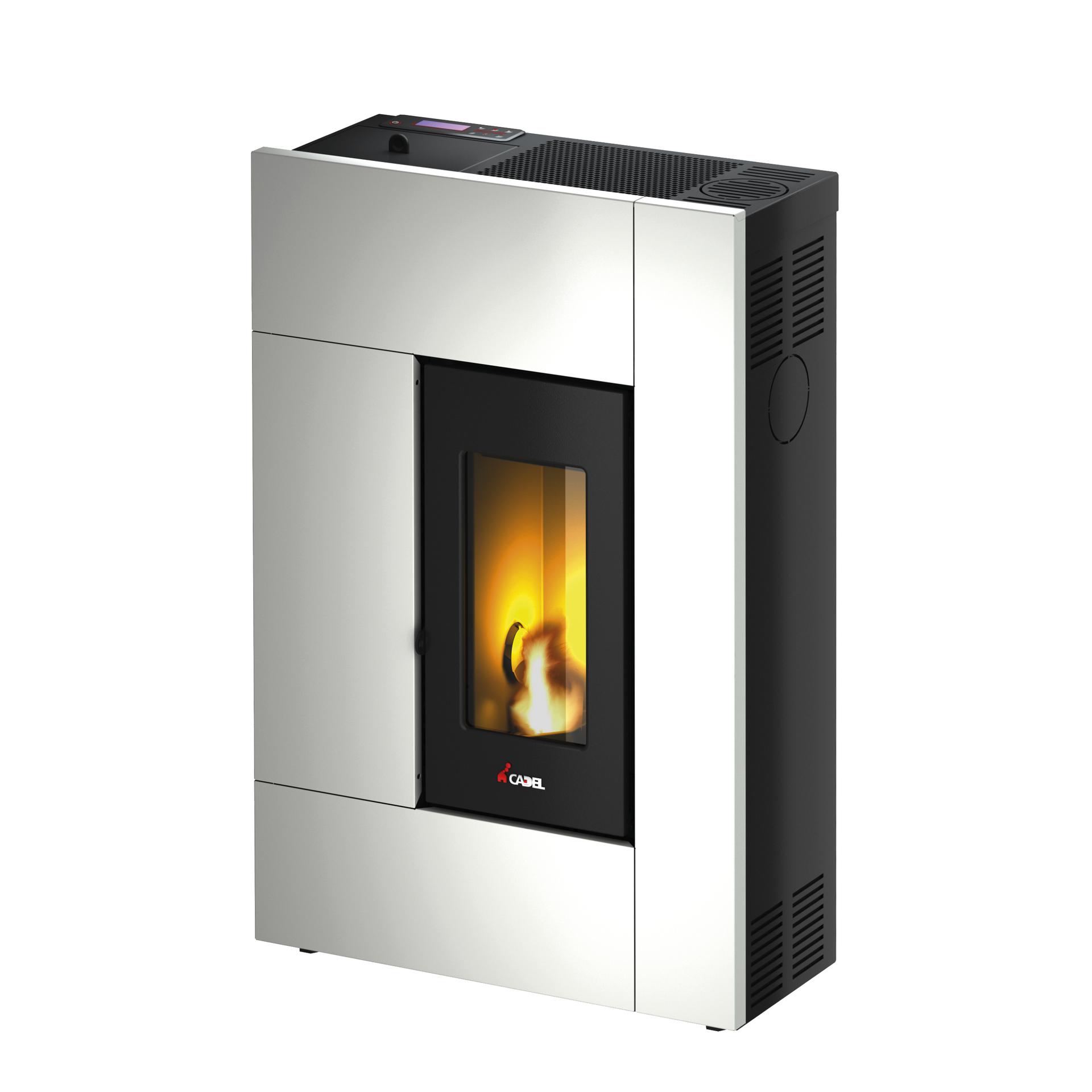 Peč z ozko, kompaktno obliko, sodobnim dizajnom, primerna za prostore z omejenimi dimenzijami, opremljena z hermetično komoro, litoželezno posodo kurišča in litoželeznimi vrati ter z možnostjo zgornjega, zadnjega in stranskega odvoda dima. Prevleka je iz lakiranega jekla.