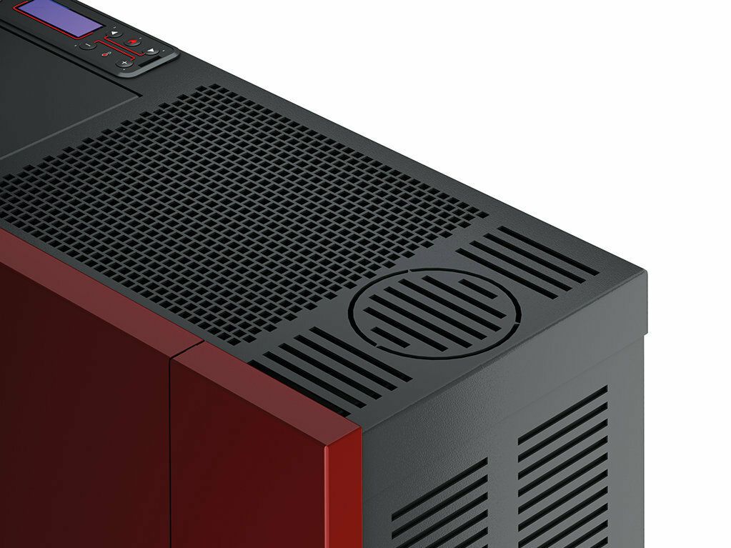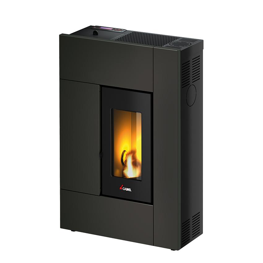 Peč z ozko, kompaktno obliko, sodobnim dizajnom, primerna za prostore z omejenimi dimenzijami, opremljena z hermetično komoro, litoželezno posodo kurišča in litoželeznimi vrati ter z možnostjo zgornjega, zadnjega in stranskega odvoda dima. Prevleka je iz lakiranega jekla.