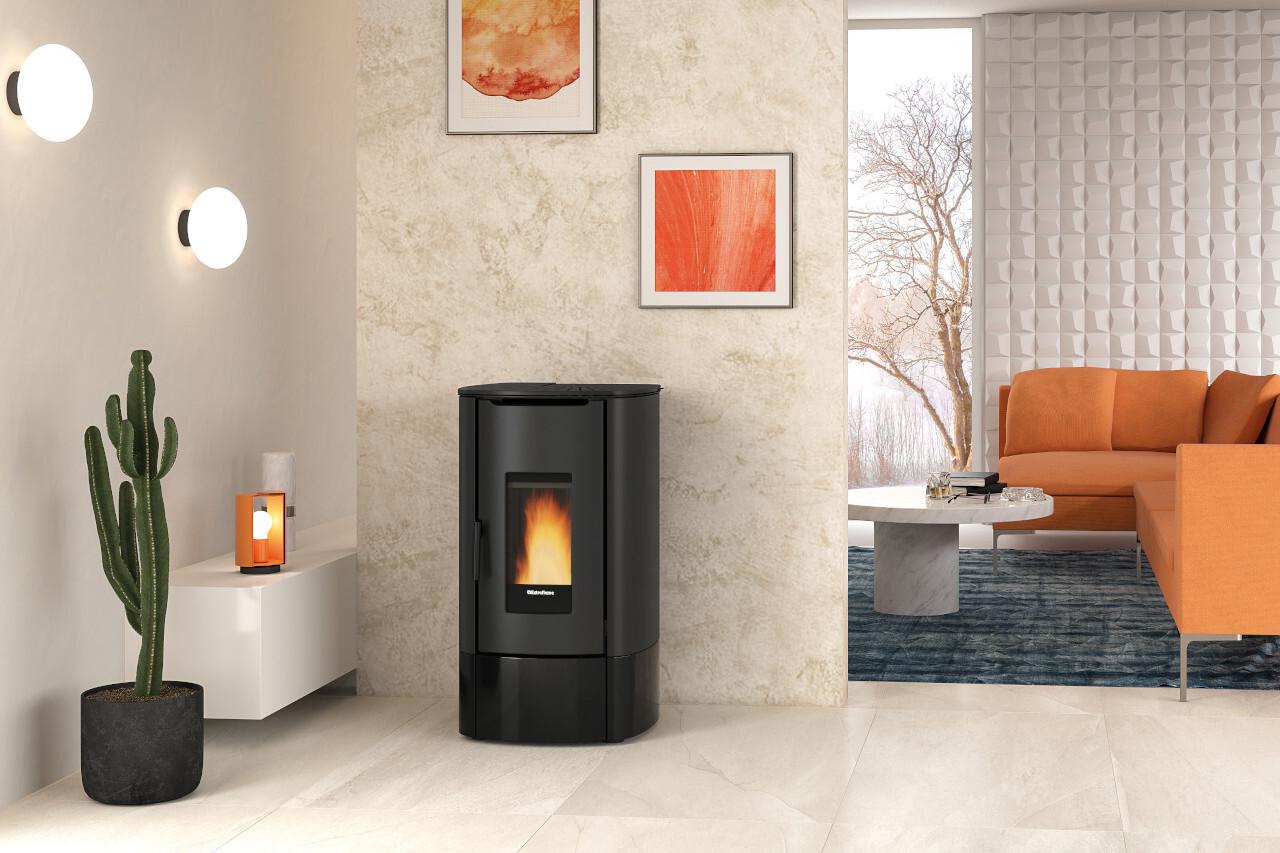 Peč na pelete z dvobarvnim pobarvanim jeklenim ohišjem, ki izboljša dizajn prostora, v katerem je nameščena. Vrata, kurišče in posoda kurišča so izdelani iz litega železa, kar peči daje trpežnost in vzdržljivost.