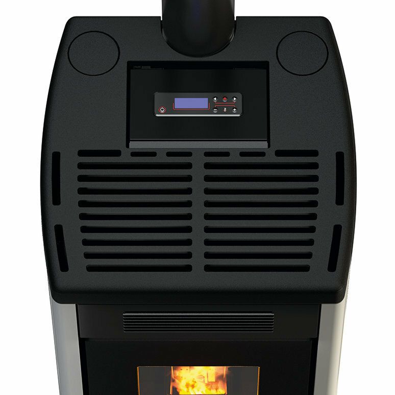 Hermetična peč na pelete z dvojnim priklopom na cevni razvod z neodvisnim upravljanjem. Integriran brezžičnim vmesnik Wi-Fi za daljinsko upravljanje. Prilagodljiva peč, ki se lahko namesti s priklopom na zgornji ali zadnji priključek za odvod dima.