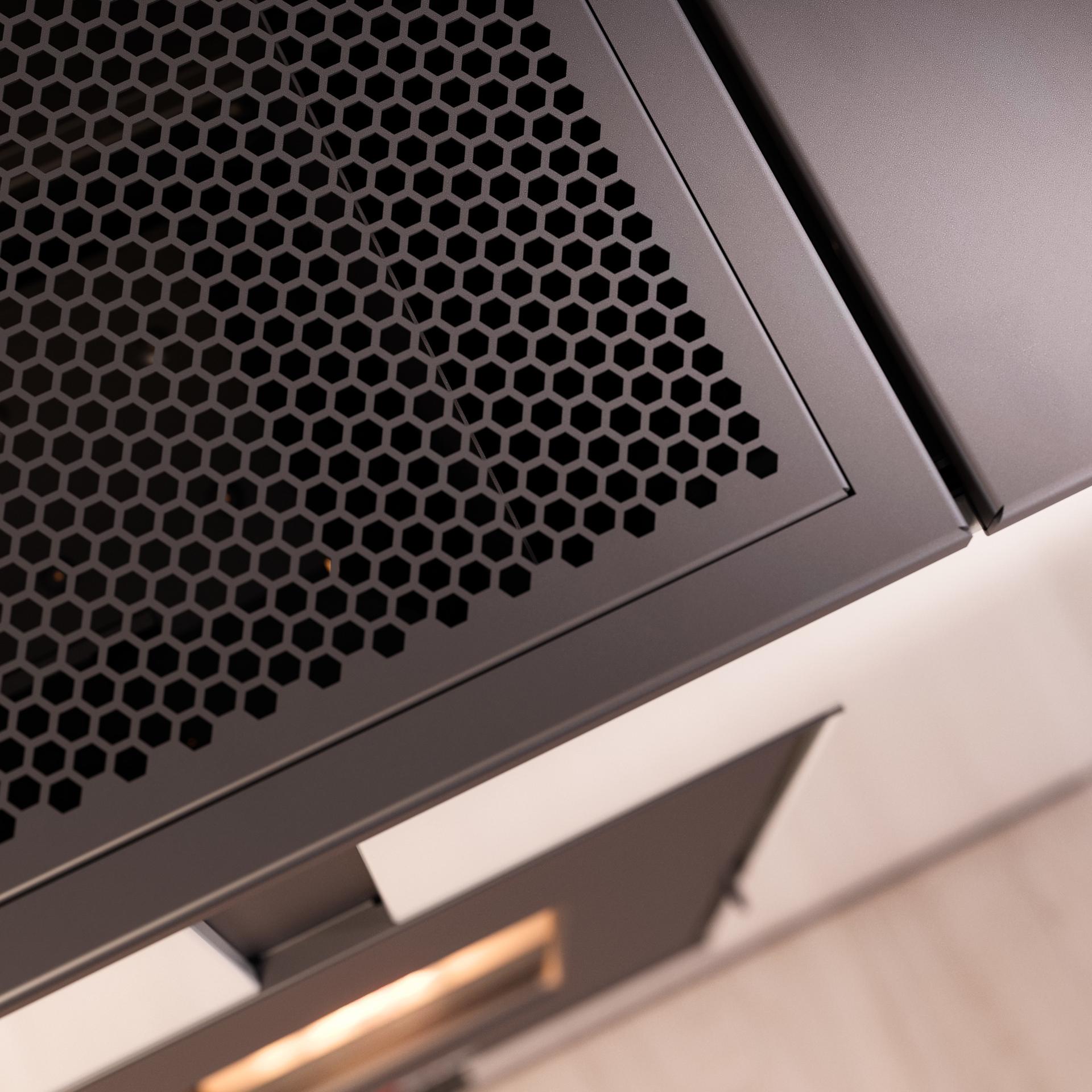 Zaradi njene globine 27 centimetrov je Tile Plus 10 rešitev za tiste, ki iščejo zmogljivo in inteligentno peč, ki se odlično vključi v manjše prostore. Vsestranska: odvod dima je mogoče priključiti na vrhu, zadaj ali ob strani. Prevleka je iz pobarvanega jekla.