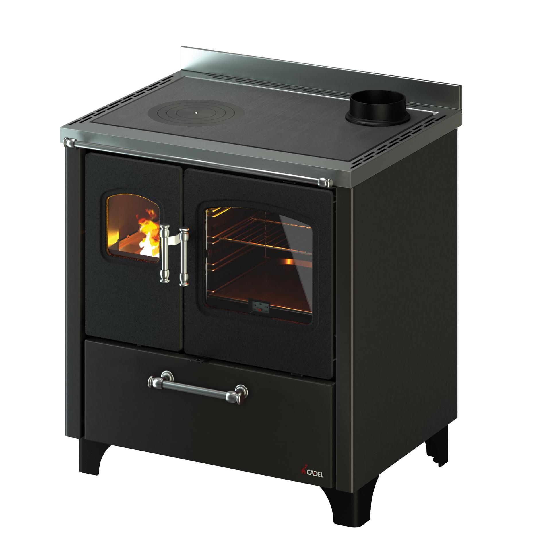 Prostostoječi ali vgradni štedilnik na drva je primeren za vsako okolje. Ima vrata iz litega železa, elegantne jeklene ročaje in ograjo okoli kuhalne plošče ter zgorevalno komoro z notranjostjo iz ognjevzdržnega materiala. Dodatna oprema vključuje stilske nogice in jeklen podstavek.