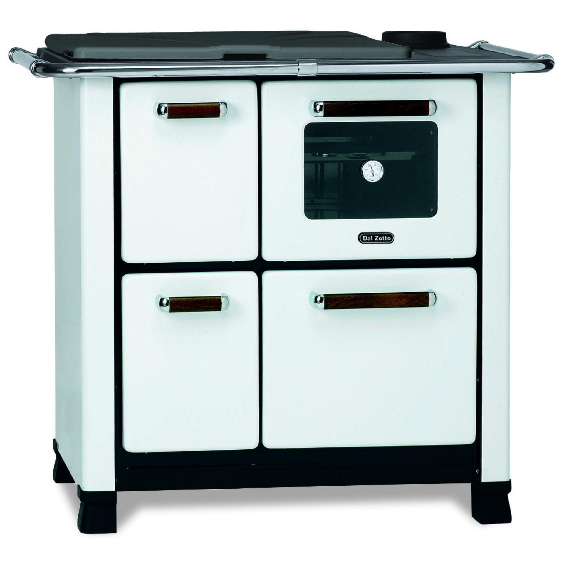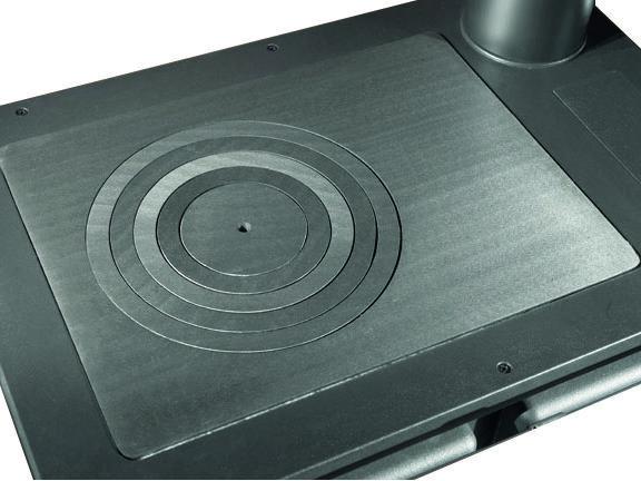 Štedilnik na drva z zunanjo oblogo iz glaziranega jekla in litoželeznim ognjiščem.