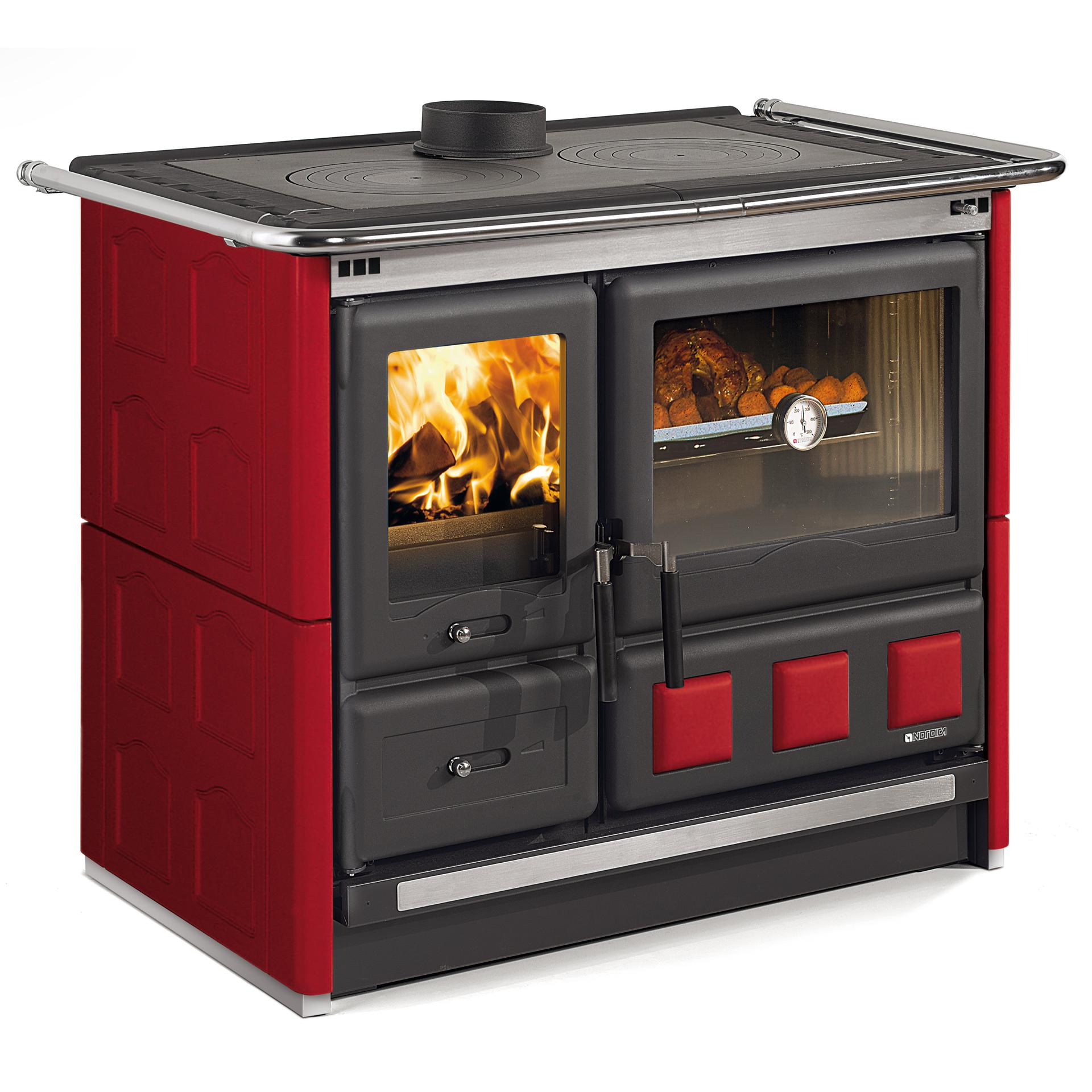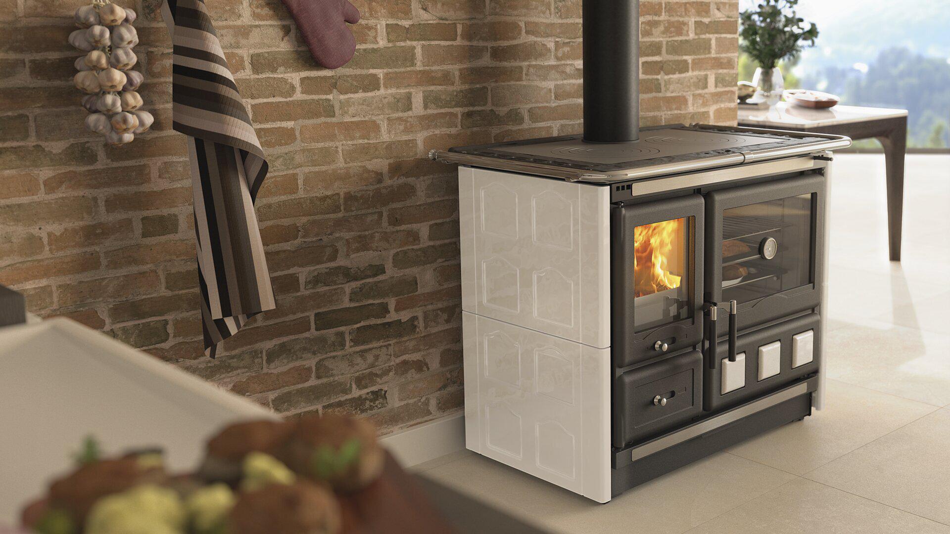 Rosa XXL z 78-litrsko emajlirano pečico in jekleno oblogo, prevlečeno s porcelanom, združuje funkcionalnost z vzdržljivo strukturo. Na voljo v bordo in neskončno beli barvi, zato je kot nalašč primerna za opremljanje kuhinje, dvojno steklo in predal za drva pa povečata njeno vrednost in praktičnost.